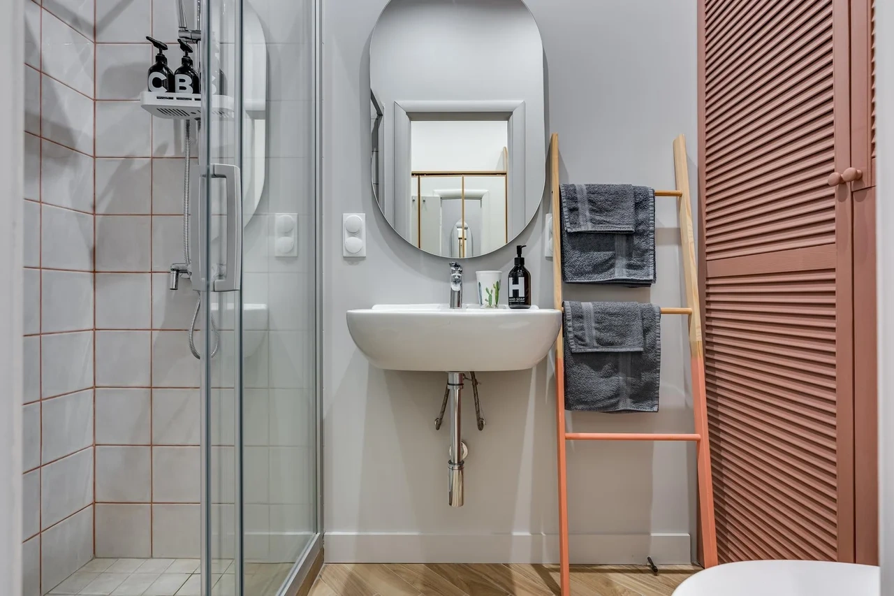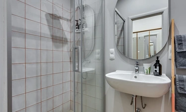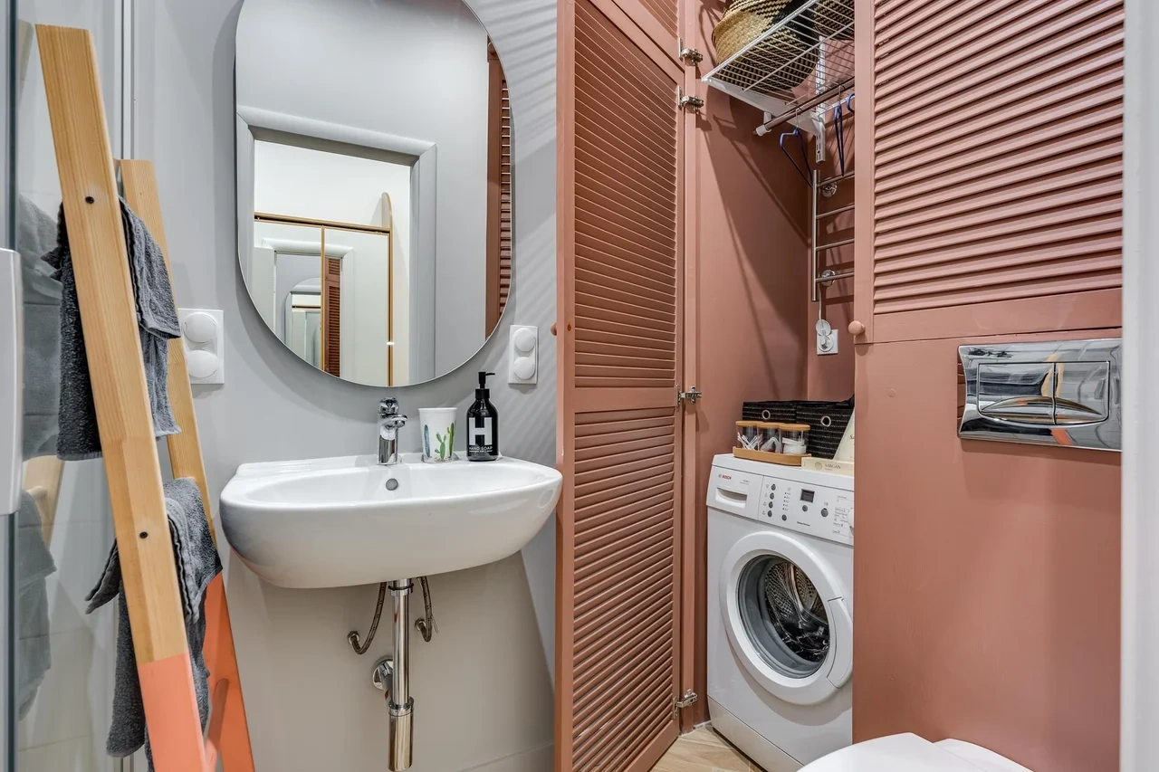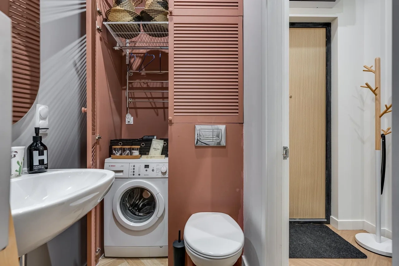 В САНУЗЛЕ – душевая кабина, стиральная машина, сушильный шкаф. Есть фен, гель для душа, шампунь, кондиционер для волос, ватные палочки, диски и др.