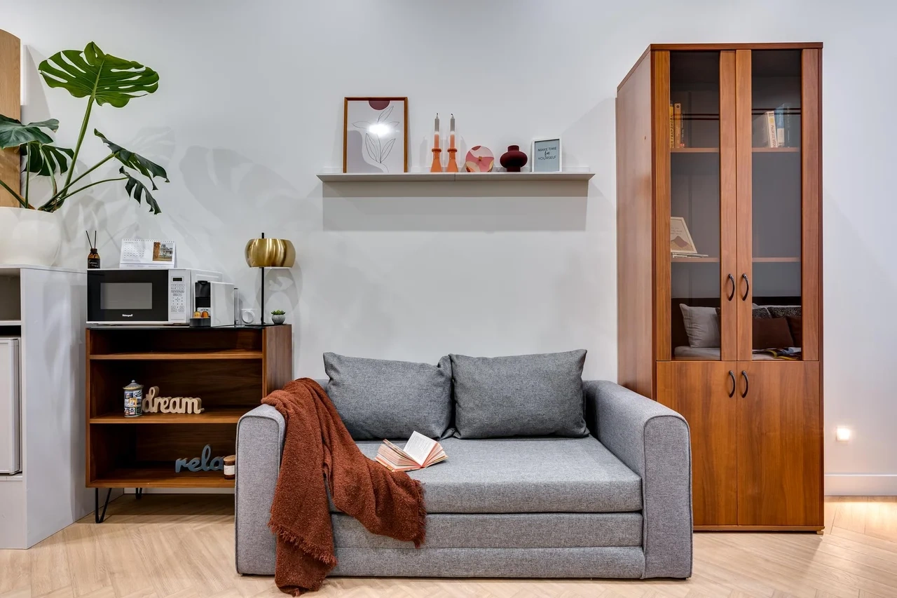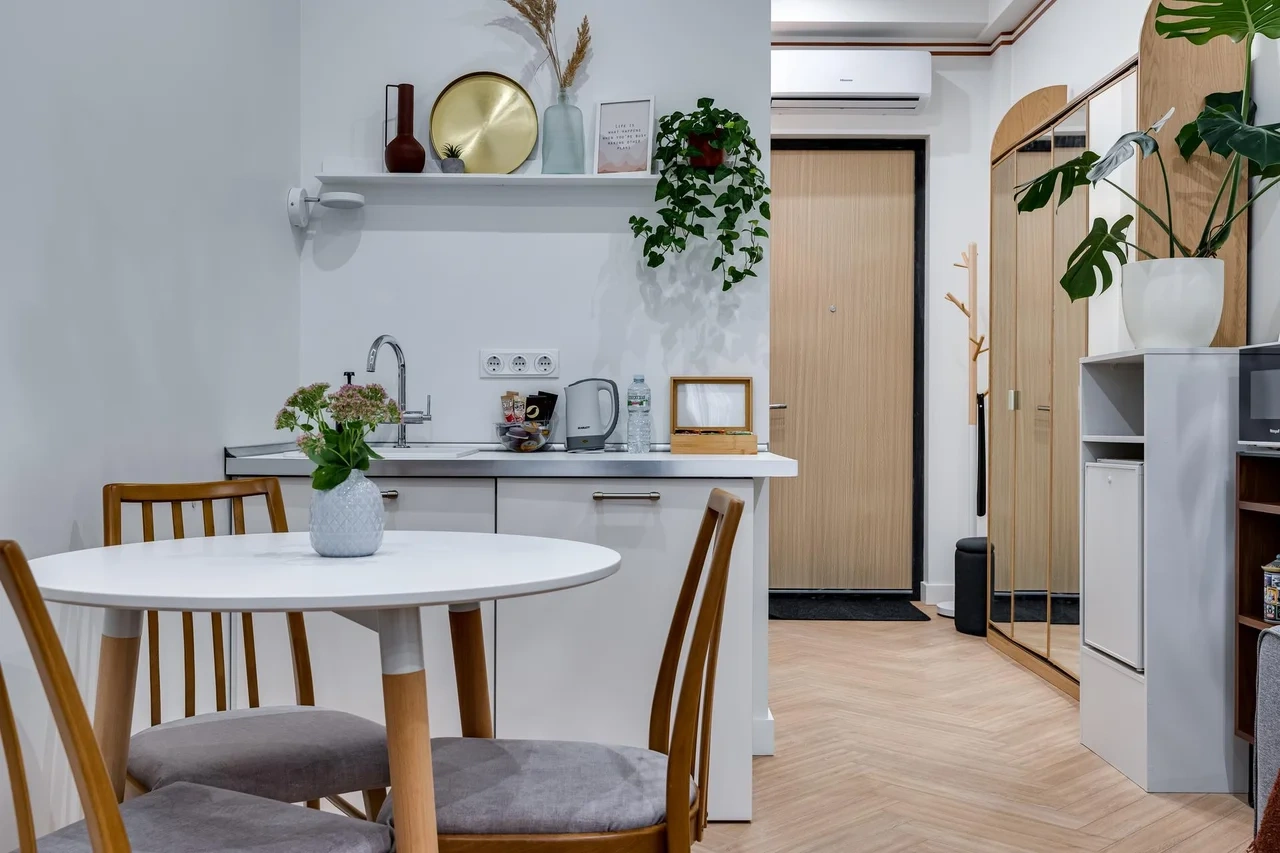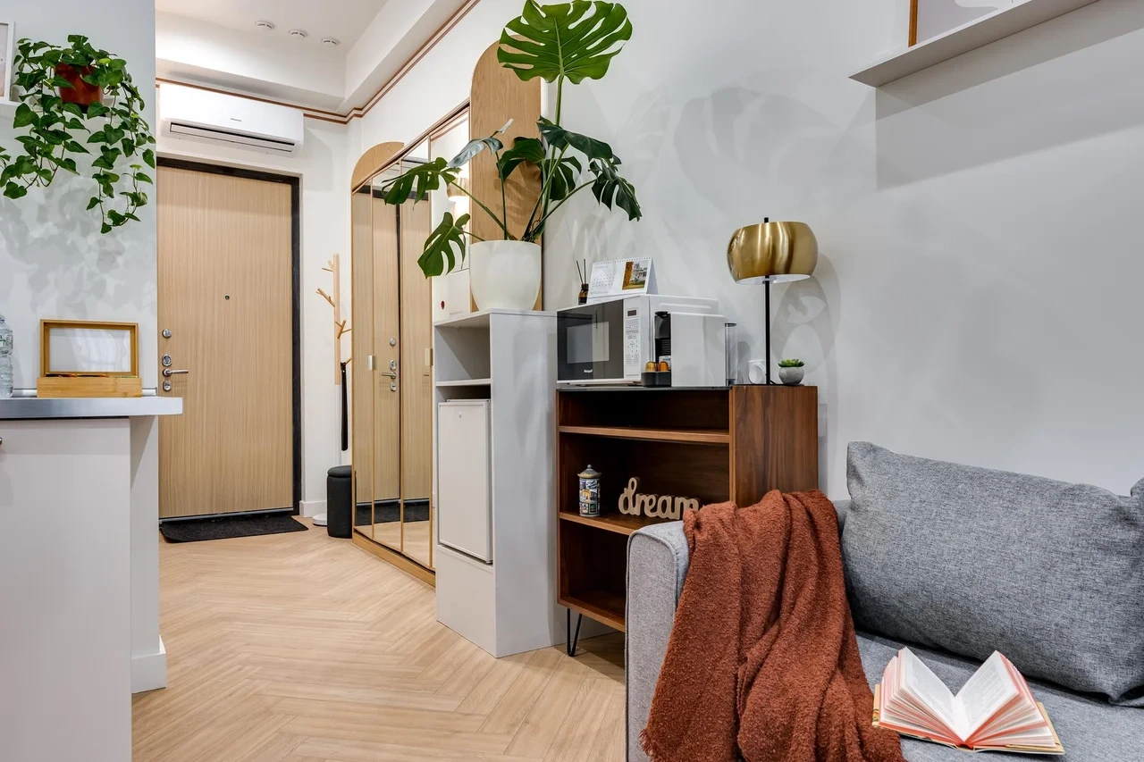 УДОБСТВА: В апартаменте есть все необходимое как для краткосрочных weekend, так и для жизни несколько недель. Интерьер студии продуман, чтобы вы могли чувствовать себя как дома.