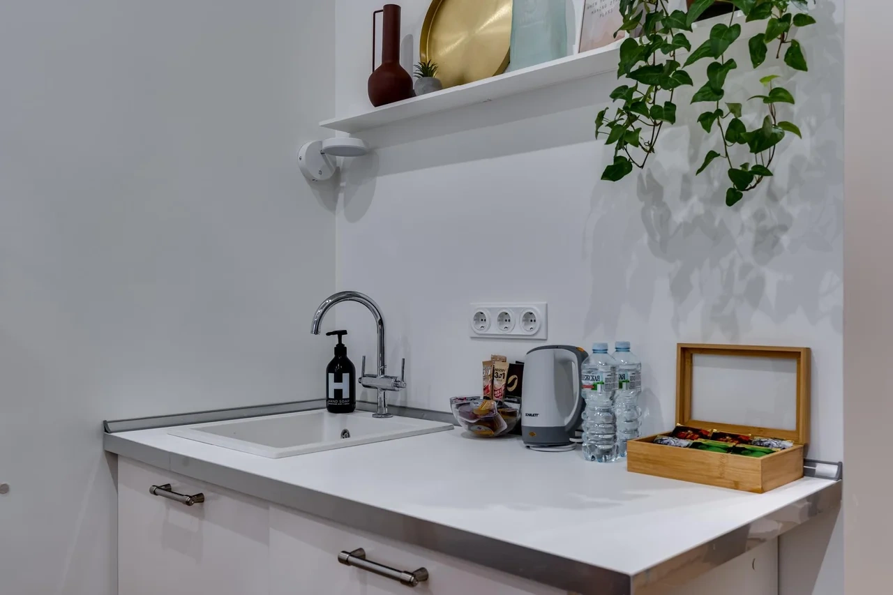 В ЗОНЕ СПАЛЬНИ - кровать 140*200 c ортопедическим матрацем позволит хорошо выспаться. Кофемашина приготовит вкусный кофе. Джемы, чай, питьевая вода, горячий шоколад в welcome set для проживающих. Есть постельное белье, полотенца. Верхний, средний и нижний свет позволят создавать разные сценарии освещения в помещении и добавляют уюта и функциональности.