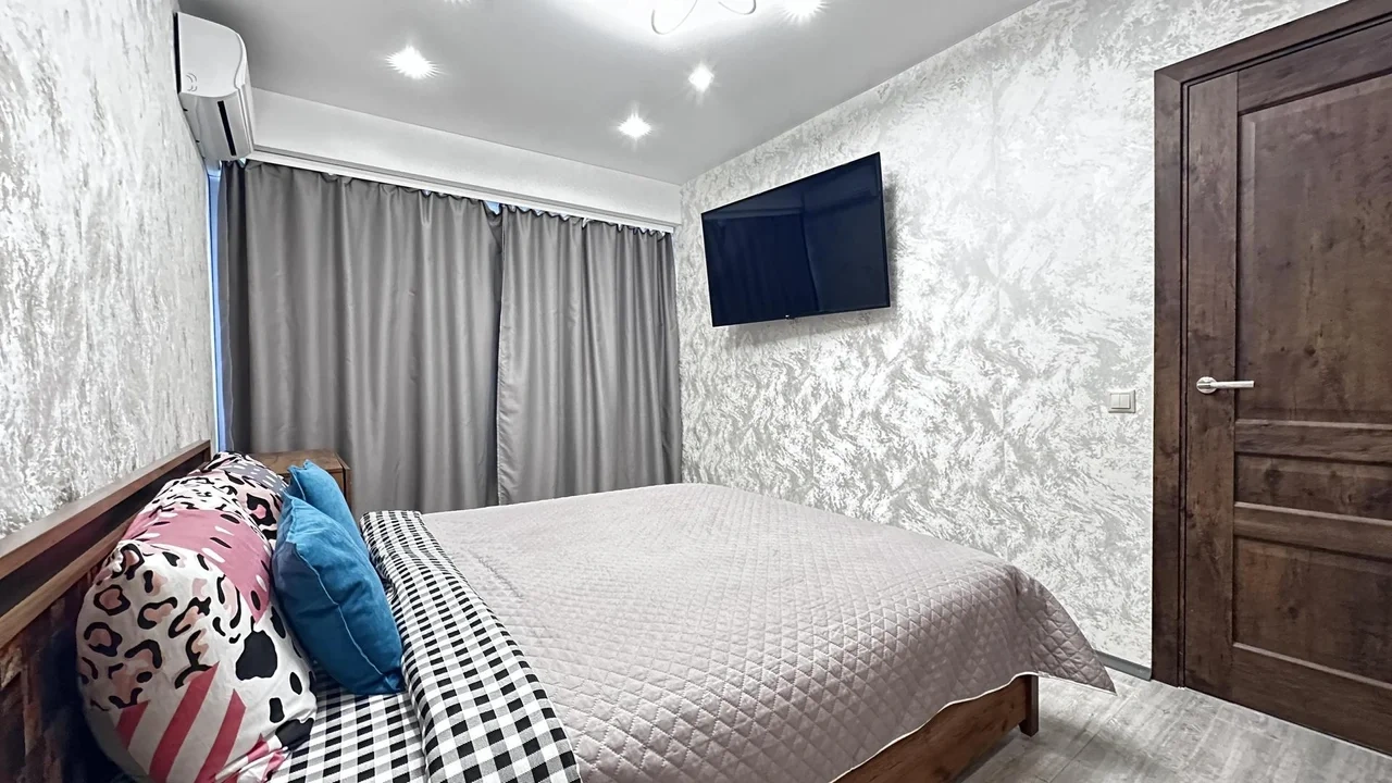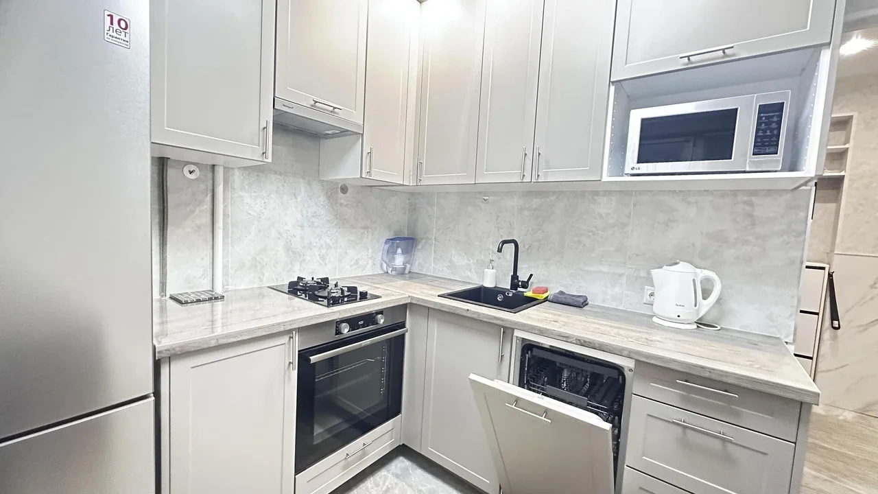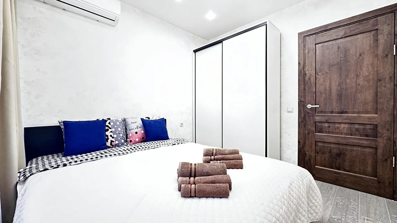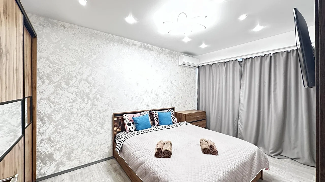 Квартира полностью оснащена всем необходимым для жизни: телевизор со Смарт-ТВ, wi-fi, кондиционер, стиральная машина, фен, гладильные принадлежности, чистое постельное белье и полотенца, туалетные принадлежности, тапочки, зубной набор, посудомоечная машина, посуда для приготовления пищи, также для гостей с детьми имеется детский набор посуды.