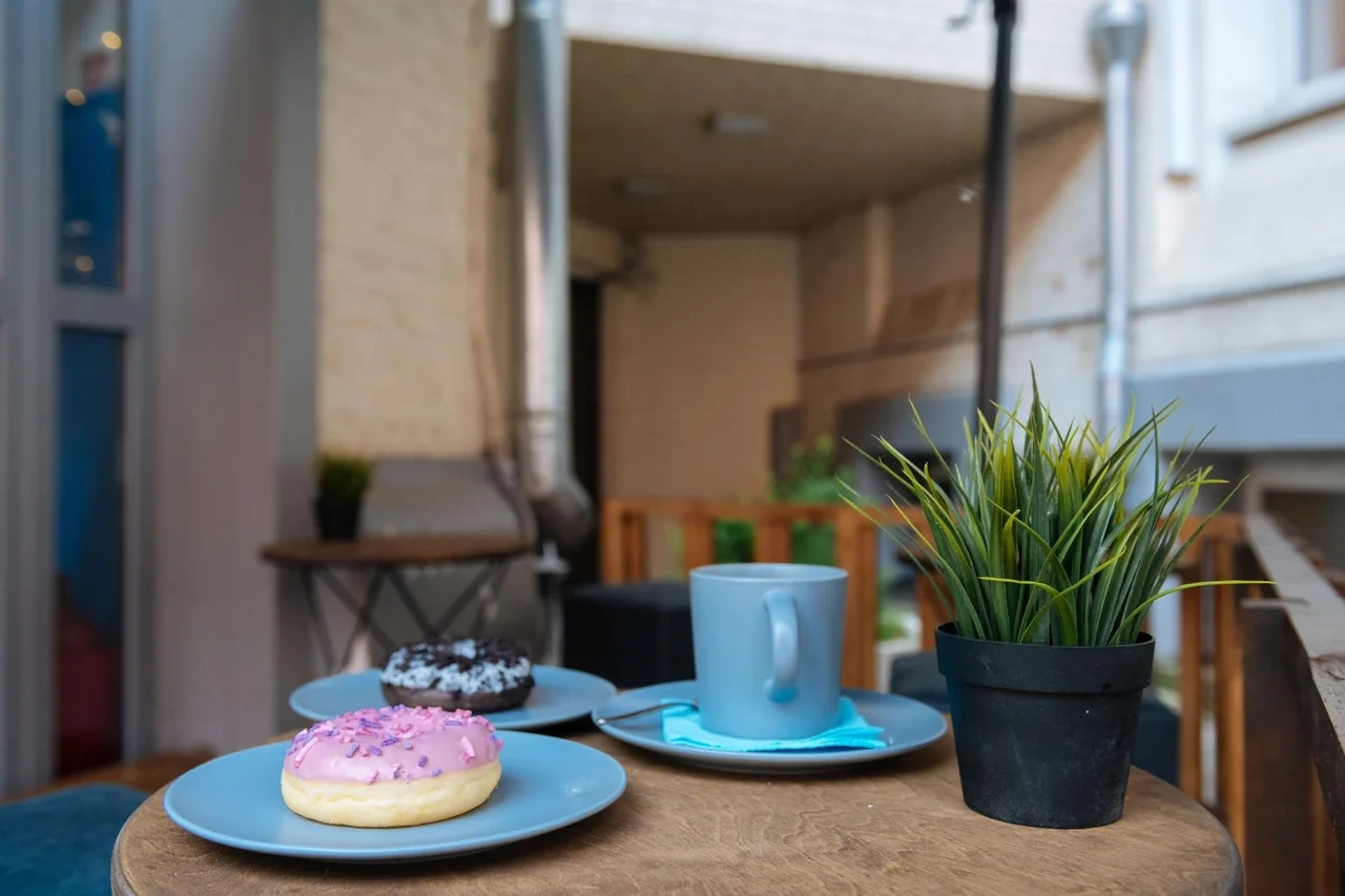 Это отель - кофейня, где гостям делают отличный капучино и выпекают свежие круассаны.