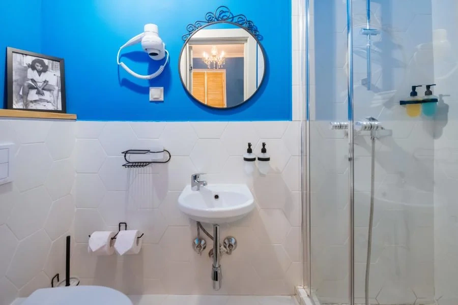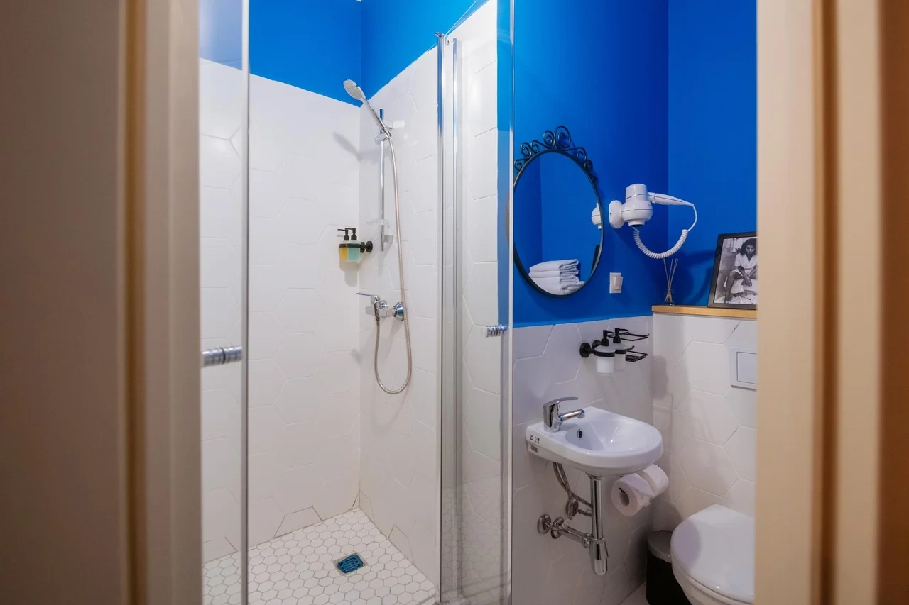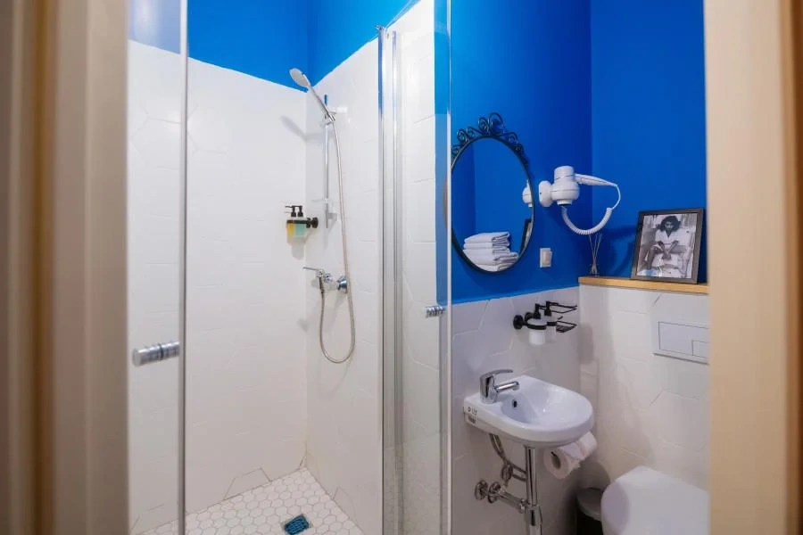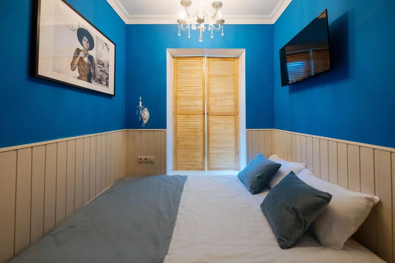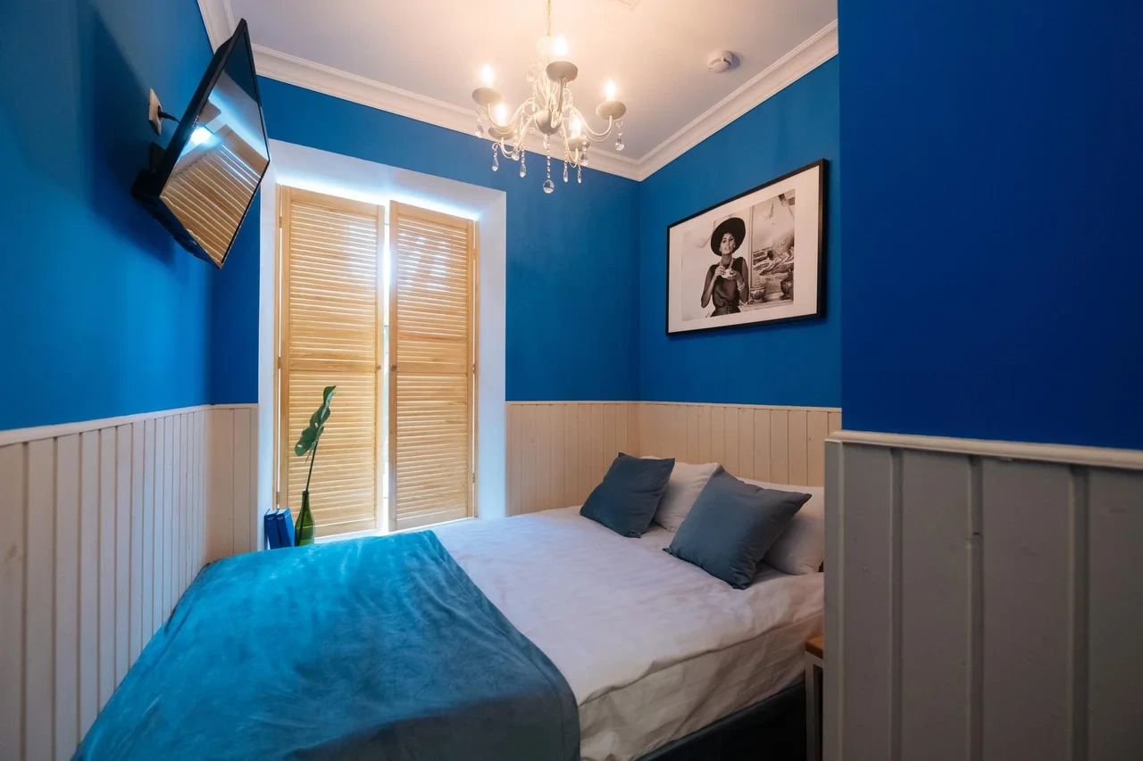 Прохладно, из-за того, что батарея закрыта кроватью. Нет банкетки и ложки для обуви. В номере пахнет сыростью, хотя номер сухой. Синий цвет придаёт неуютность. Если бы цвет номера был пастельный или бледно серый, смотрелся бы уютнее и создавалось бы ощущение теплоты.