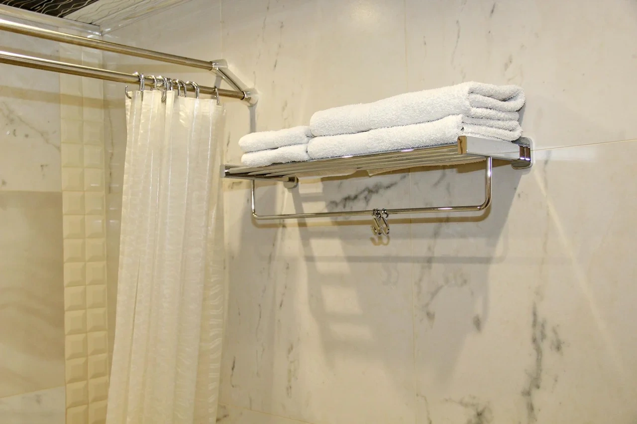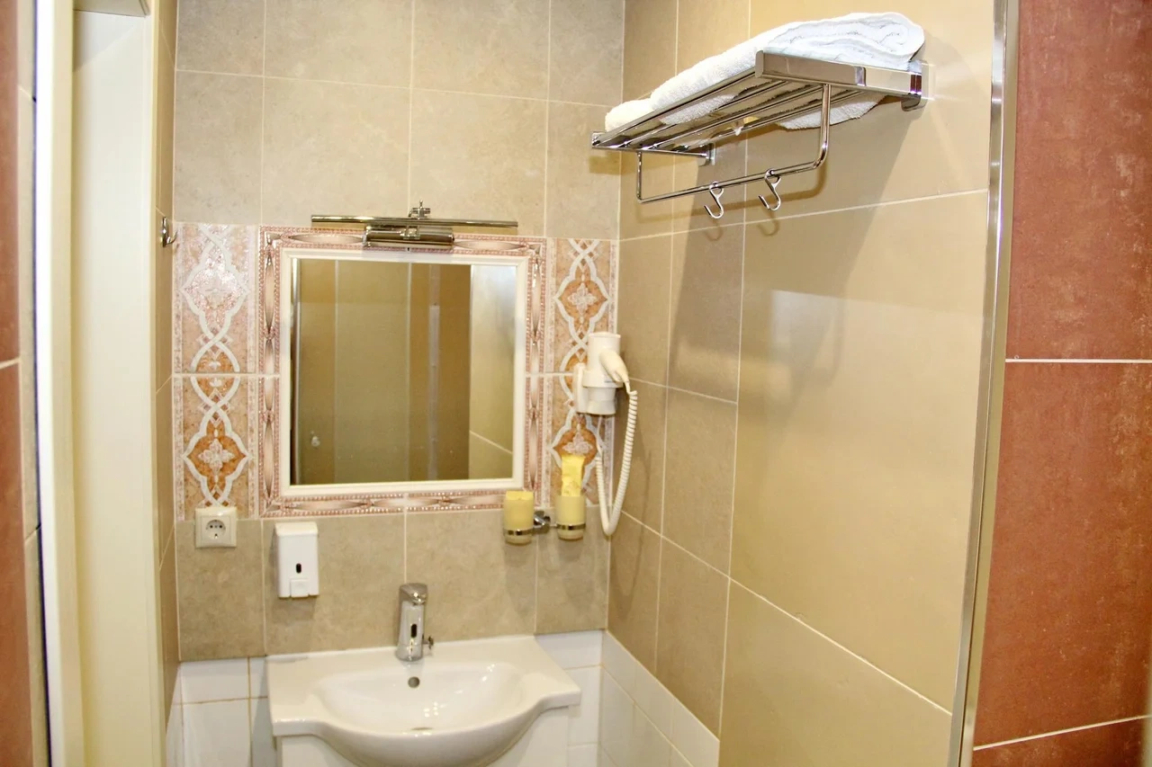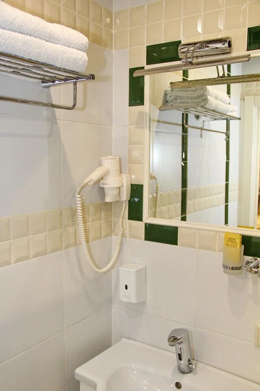 Номер очень тесный, некуда поставить чемодан, нет столика попить чай, номер расчитан на то, что человек войдёт в лёгкой одежде и ляжет спать.