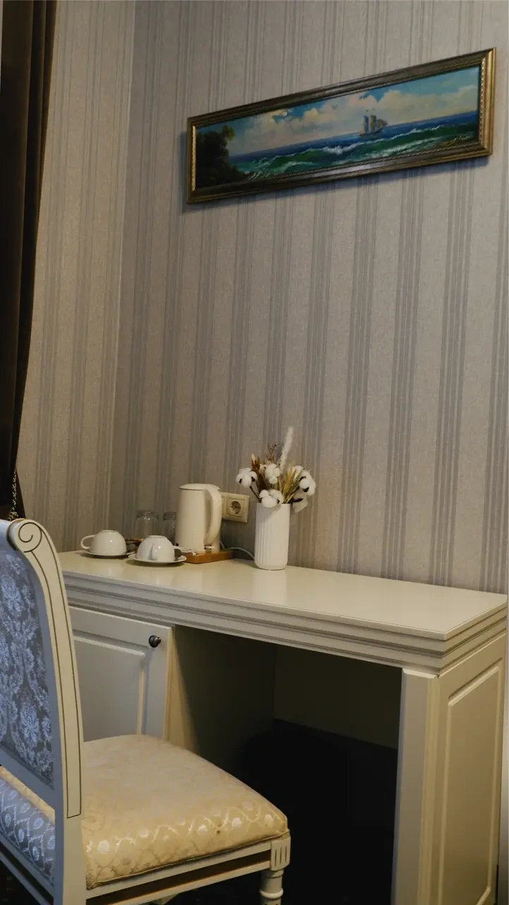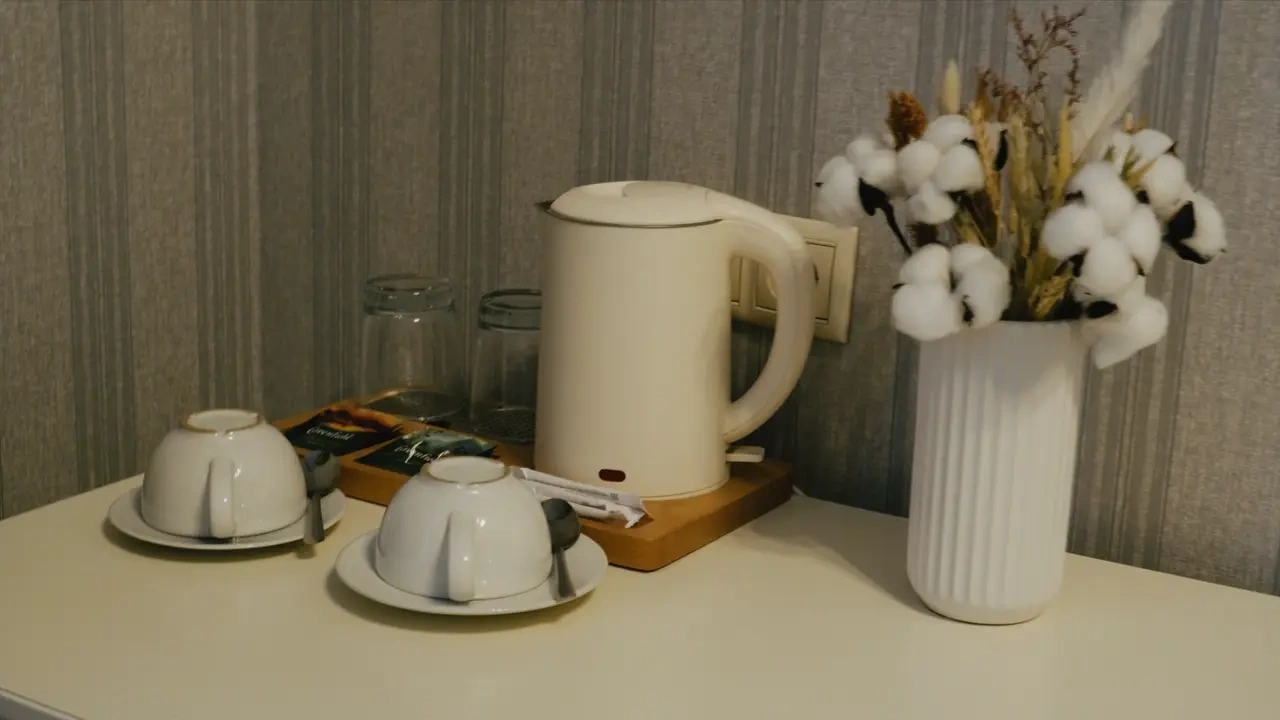 Гостиница предлагает 22 номера различных категорий. В каждом номере: электронный ключ-карта, сейф, кондиционер, телефон, Wi-Fi, холодильник, чайник, ванная комната с душевой кабиной, фен, халат, тапочки, туалетно-косметические принадлежности, утюг.