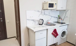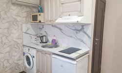 Маленький холодильник с маленкой морозильной камерой. Отсутствовала ручка в душе на кране.