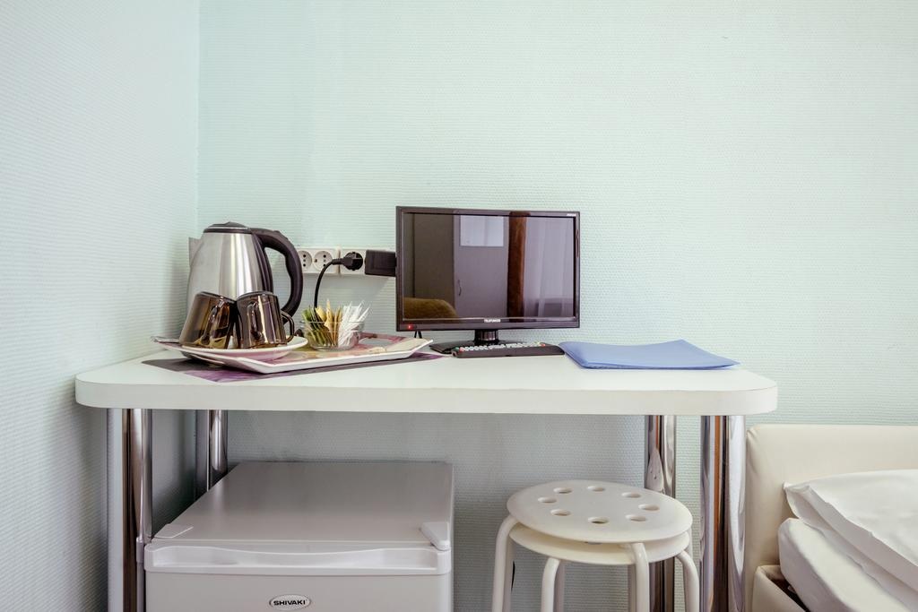 Стойка регистрации отеля «Агиос на Курской» работает круглосуточно. В кафе «Трапезная» предложат блюда русской и европейской кухни.