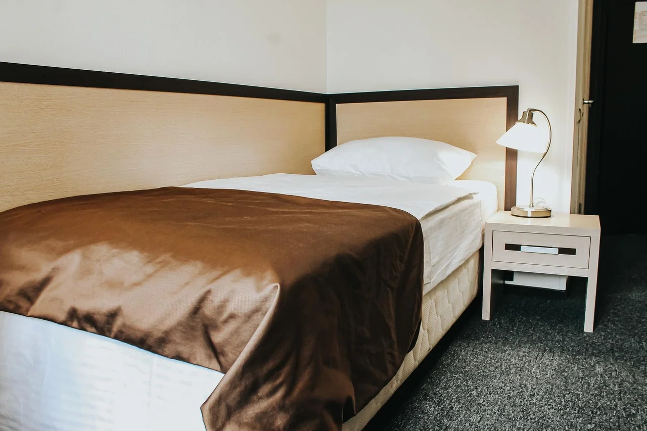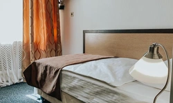 Номера категории "Стандарт" - это уютное и функциональное пространство, созданное для комфортного проживания гостей. В номере "Стандарт" вы найдете все необходимое для приятного отдыха. Площадь номера составляет 12м. Он оборудован удобной кроватью с мягким матрасом и свежим постельным бельем, где вы сможете отдохнуть после насыщенного дня. В номере также имеется рабочее место с письменным столом и стулом, где вы можете выполнять свои деловые задачи или просто организовать свою работу. Для вашего удобства в номере "Стандарт" есть телевизор с широким выбором каналов, чтобы вы могли насладиться своими любимыми программами или фильмами. Также в номере есть бесплатный Wi-Fi, чтобы вы могли оставаться на связи и пользоваться интернетом без ограничений. В собственной ванной комнате с душем или ванной вы найдете все необходимые туалетно-косметические принадлежности, включая полотенца, шампунь, гель для душа, мыло и фен. Номера категории "Стандарт" предлагают пространство, где вы сможете отдохнуть и расслабиться после долгого дня. Они идеально подходят для индивидуальных путешественников или деловых поездок.