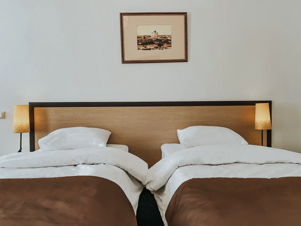 Номер категории «Комфорт» с двумя отдельно стоящими кроватями — отличный вариант для размещения двух человек, прибывших с деловой поездкой или друзей, путешествующих вдвоем. В таком номере все располагает к комфортному отдыху: продуманный интерьер создает уют, две раздельные кровати с современным матрасом свежим постельным бельем обещают крепкий сон. Если в поездке вам нужно поработать — в вашем распоряжении удобный рабочий стол и высокоскоростной беспроводной интернет. Для вашего удобства в номере "Комфорт" есть телевизор с широким выбором каналов, чтобы вы могли насладиться своими любимыми программами или фильмами. Также есть мини холодильник, чайная станция, индивидуальный сейф для ценных вещей и документов. В собственной ванной комнате с душем вы найдете все необходимые туалетно-косметические принадлежности, включая полотенца, шампунь, гель для душа, мыло и фен. Номера категории "Комфорт" предлагают пространство, где вы сможете отдохнуть и расслабиться после долгого дня. Они идеально подходят для комфортного отдыха во время туристической или деловой поездки в столицу.