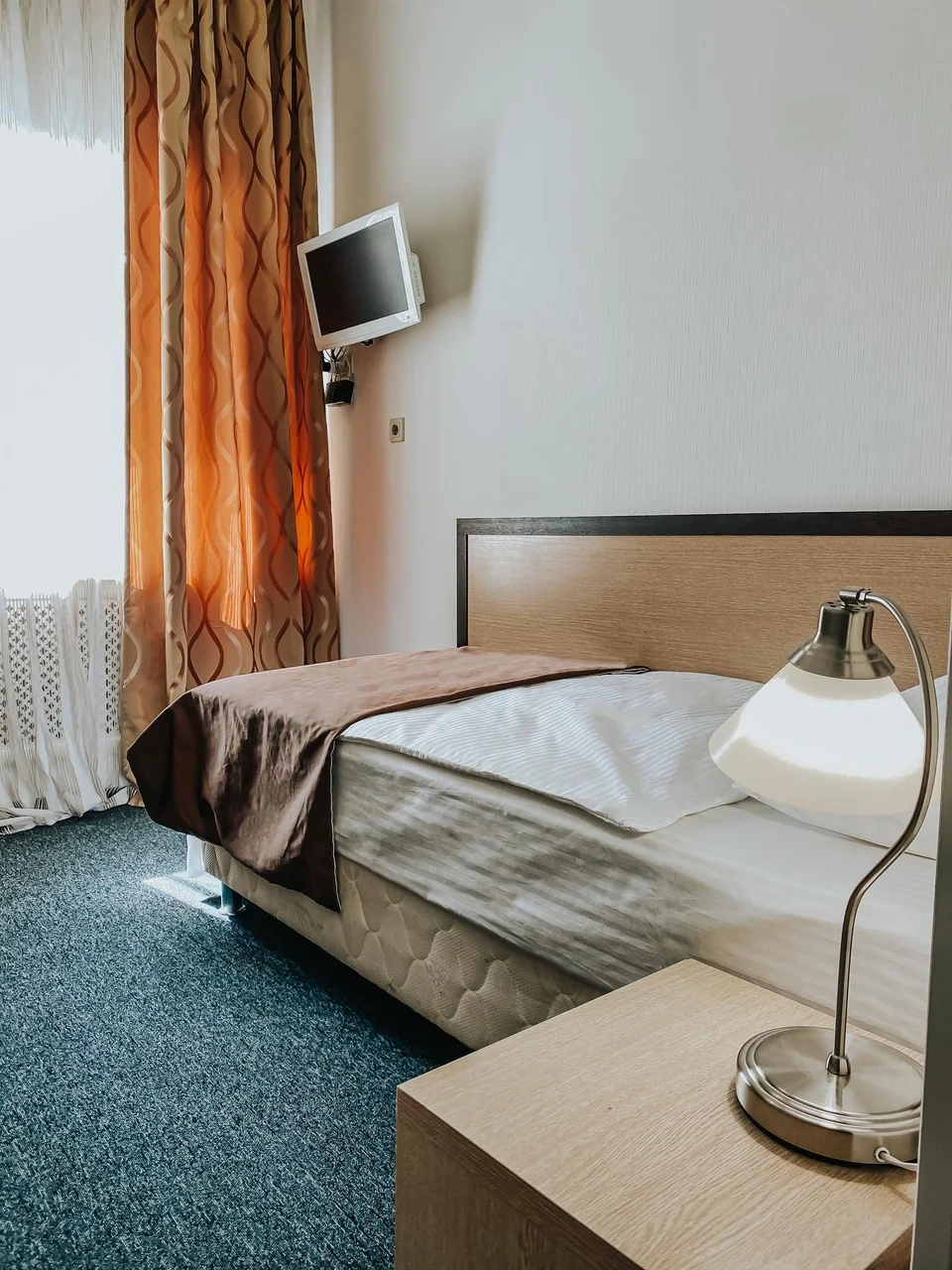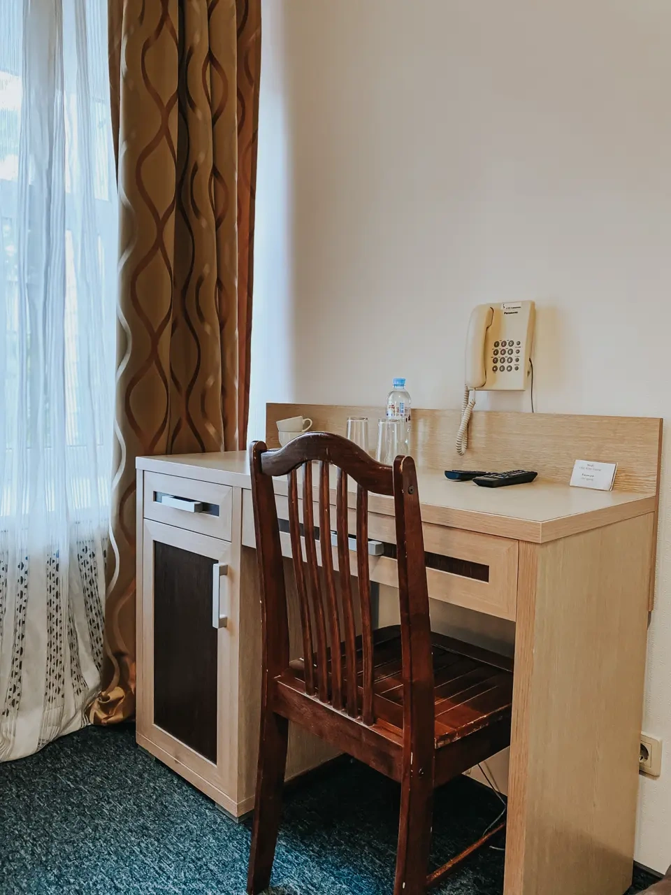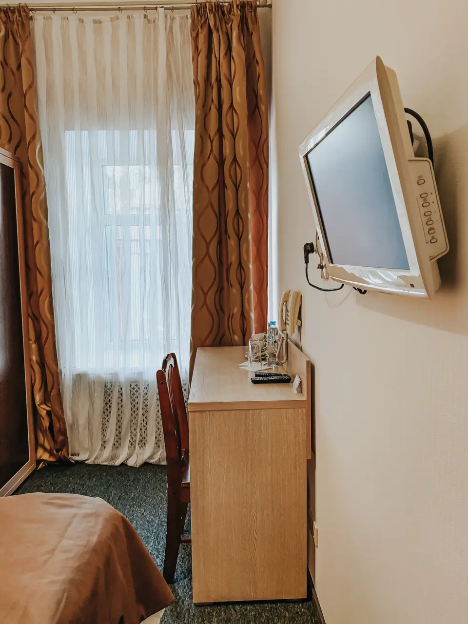 Номер категории "Комфорт" это эргономичный номер, который идеально подходит для комфортного отдыха во время туристической или деловой поездки в столицу. В номере "Комфорт" вы найдете все необходимое для приятного отдыха. Площадь номера составляет 15 м. Он оборудован удобной кроватью с мягким матрасом и свежим постельным бельем, где вы сможете отдохнуть после насыщенного дня. В номере - рабочая зона с удобным письменным столом и стулом. Для вашего удобства в номере "Комфорт" есть телевизор с широким выбором каналов, чтобы вы могли насладиться своими любимыми программами или фильмами. Также есть высокоскоростной Wi-Fi, мини холодильник, чайная станция, индивидуальный сейф для ценных вещей и документов. В собственной ванной комнате с душем или ванной вы найдете все необходимые туалетно-косметические принадлежности, включая полотенца, шампунь, гель для душа, мыло и фен. Номера категории "Комфорт" предлагают пространство, где вы сможете отдохнуть и расслабиться после долгого дня.