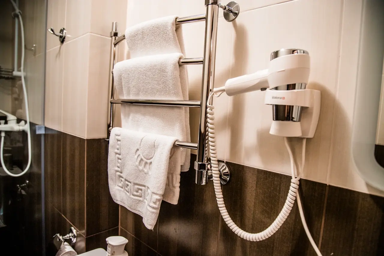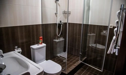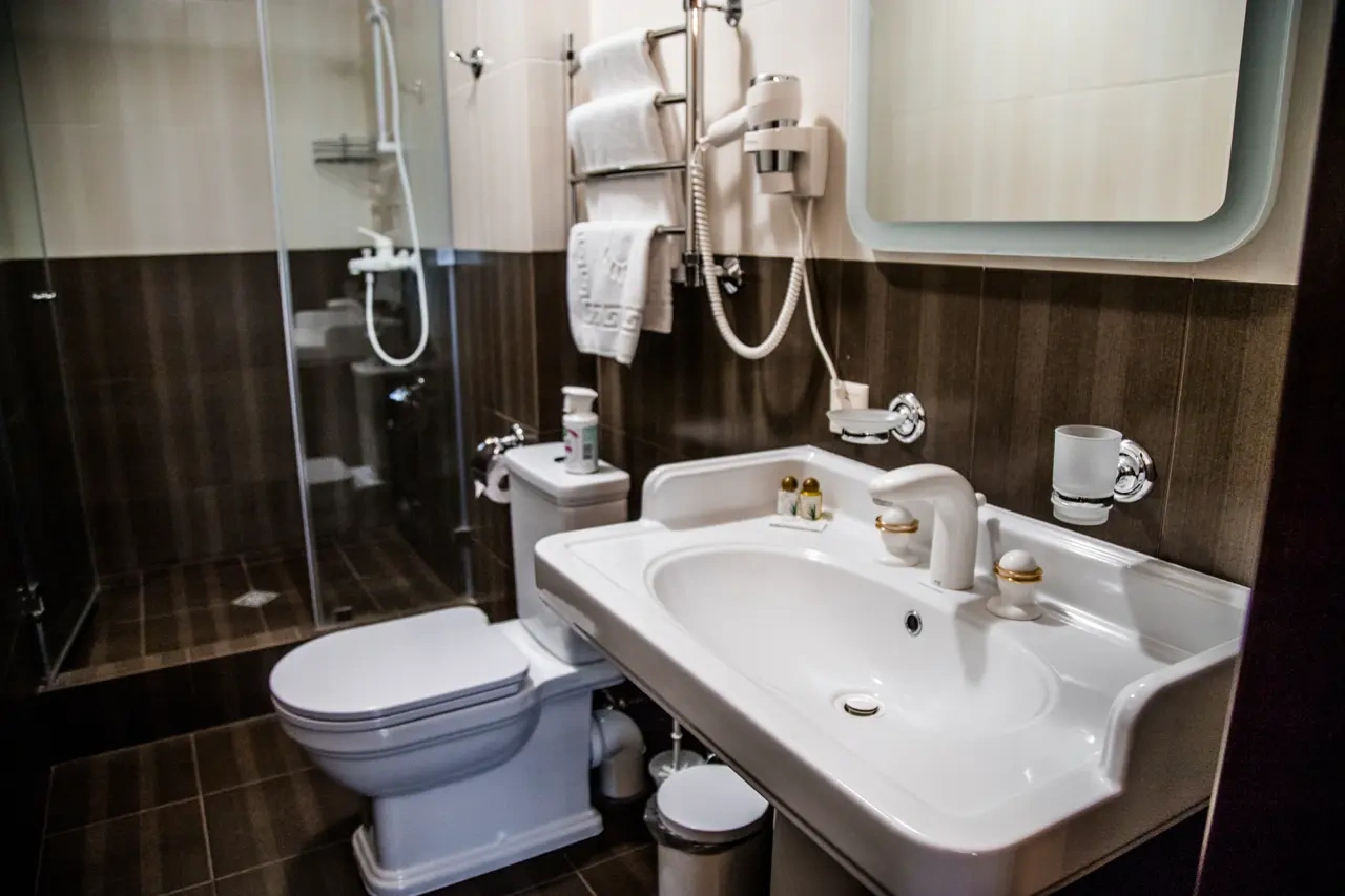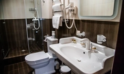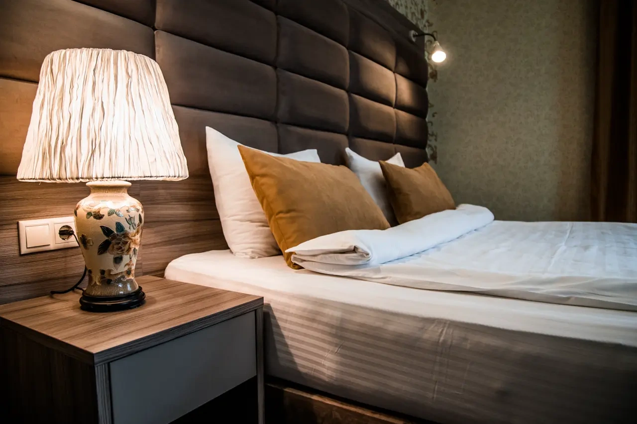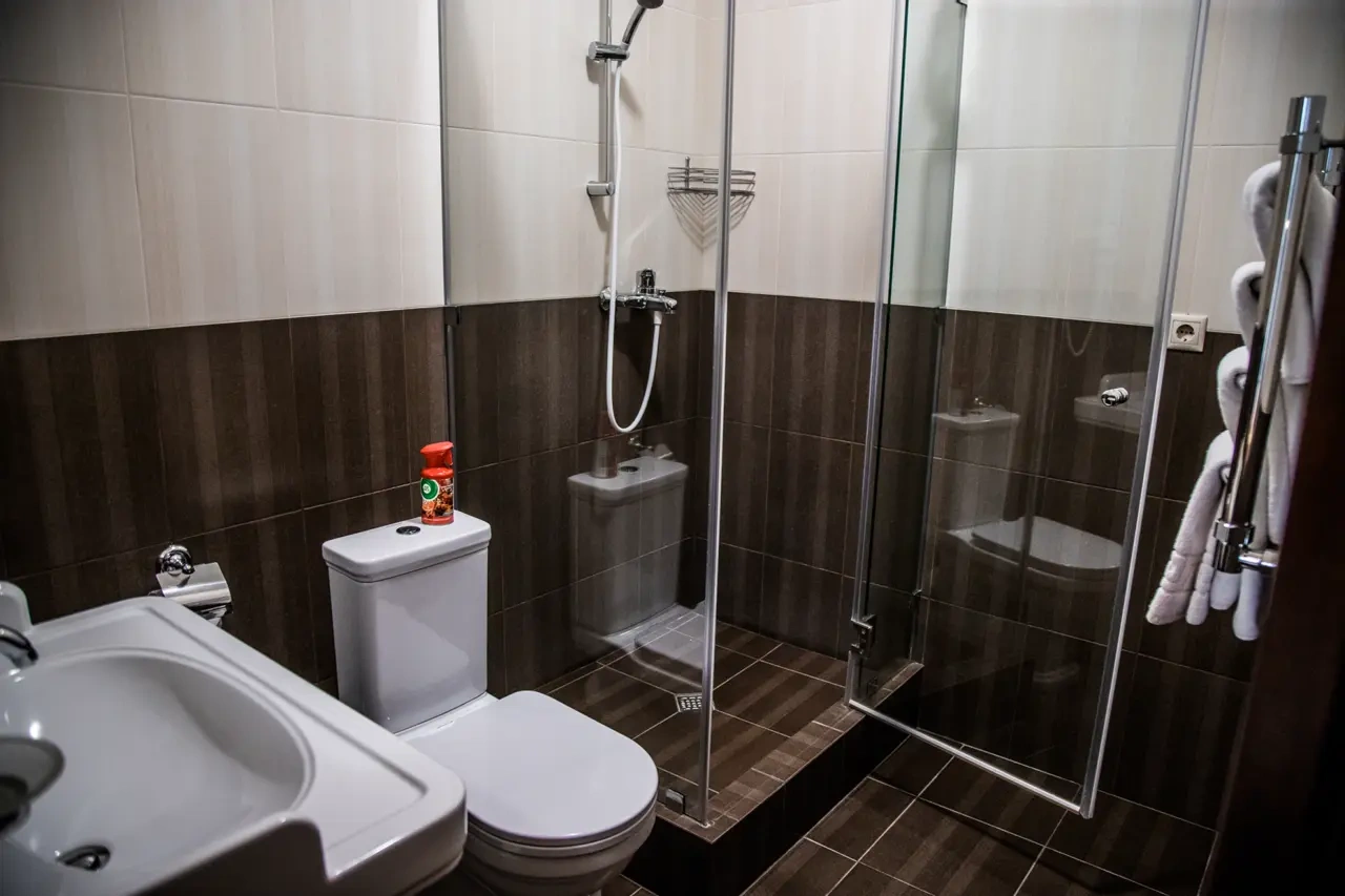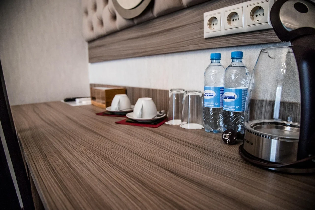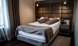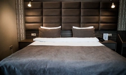 Уютный просторный номер с двуспальной кроватью и ортопедическим профессиональным матрасом. В номере есть всё необходимое для комфортного проживания: шкаф, прикроватные тумбочки, обувница, рабочий стол, зеркало, телевизор, сейф, фен, просторная душевая, банные принадлежности. Также в номере есть чайник, чай и чайная пара. Плотные шторы надежно защитят от лишнего света, а прикроватные лампы создадут уютный свет. Вся мебель сделана на заказ по индивидуальным замерам, а при ремонте номера использованы качественные материалы.