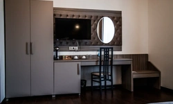 Большой семейный номер с двуспальной KINGSIZE кроватью и полутороспальной кроватью. В номере есть всё необходимое для комфортного проживания всей семьей: большой шкаф, диванчик, прикроватные тумбочки, обувница, большой стол, зеркало, телевизор, сейф, фен, просторная душевая, банные принадлежности. Также в номере есть чайник, чай и чайная пара. Плотные шторы надежно защитят от лишнего света, а прикроватные лампы создадут уютный свет. Вся мебель сделана на заказ по индивидуальным замерам, а при ремонте номера использованы качественные материалы.