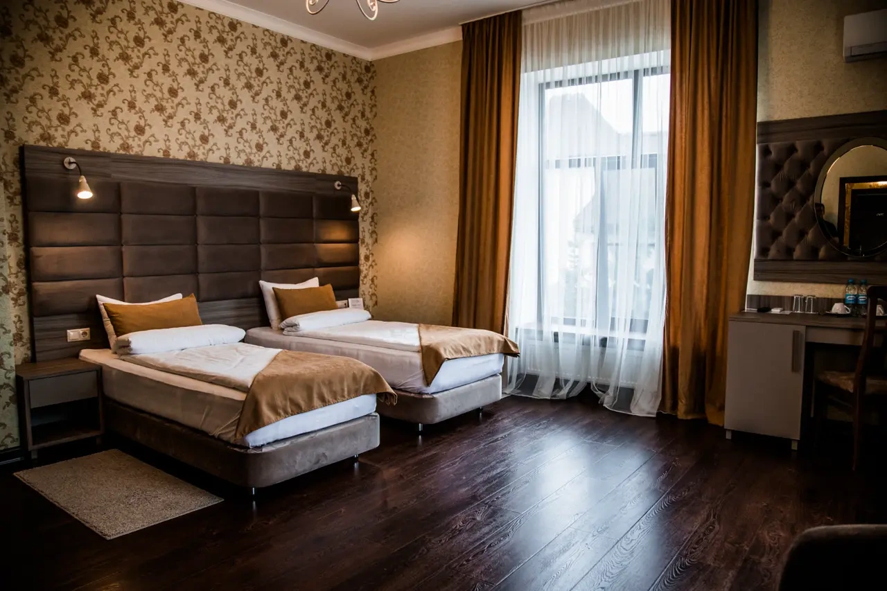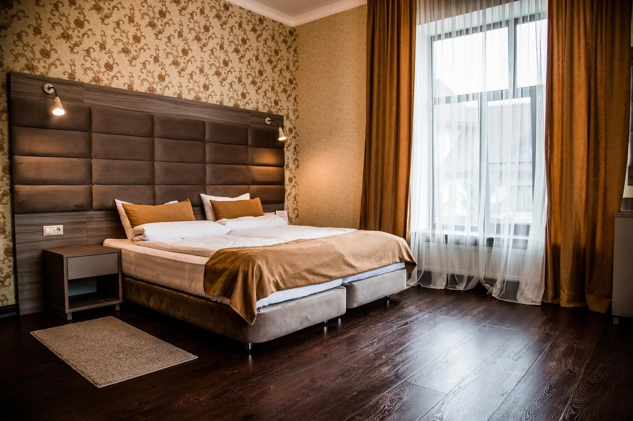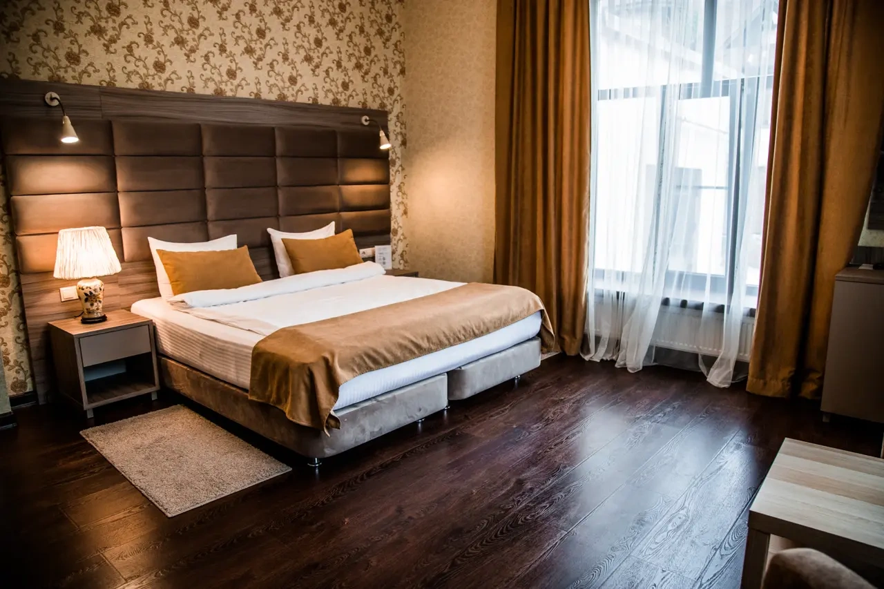 - 19 комфортных номеров, где вы найдёте все необходимое для полноценного отдыха: просторная душевая комната, кинг-сайз кровати с ортопедическим матрасом и невероятно воздушными подушками. Каждый номер выполнен в уникальном стиле и цветовой гамме с качественным текстилем, просторные номера обставлены мебелью, сделанной под заказ. Свежий ремонт выполнен из качественных и стильных материалов.