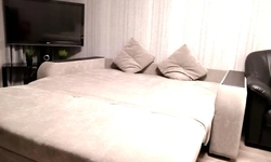 Размещение до 4-х человек (двуспальная кровать и раскладывающийся диван). Квартира обставлена новой мебелью и техникой.