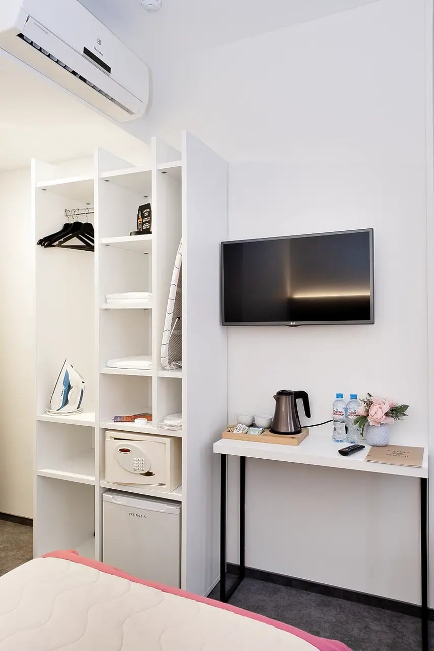 Отсутствие чайника, утюга, кондиционер не работал, телевизор не работал, холодный, маленький номер, персонал на просьбы не реагировал.
