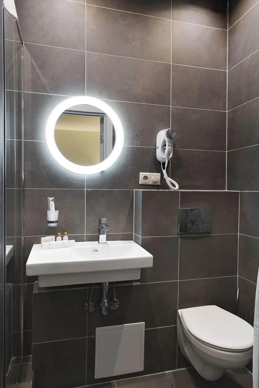 Начну с запаха плесени в комнате, хотя окно было открыто, из-за чего был жуткий холод. Хорошо, что нашелся обогреватель, который нагрел крошечную комнату за 15 минут. В туалете душ ничем не огорожен, вода потом везде: на сиденье унитаза, в мусорном ведре, пол полностью залит. Фена нет! Заранее пошла на ресепшн, чтобы взять на утро, но оказывается, фены в принципе не предусмотрены в этом отеле! И это (на минуточку) трехзвездочный отель, ночь почти 4 тыс!