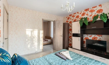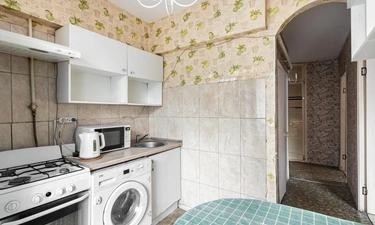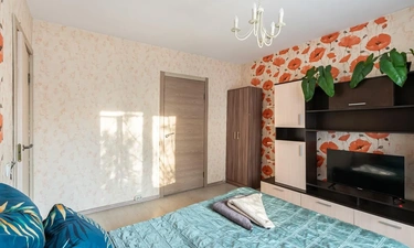 В квартире имеются: двуспальная кровать и двуспальный диван, а также вся необходимая для комфортного проживания мебель и бытовая техника (СВЧ печь, утюг, стиральная машина, электрический чайник, гладильная доска, фен).