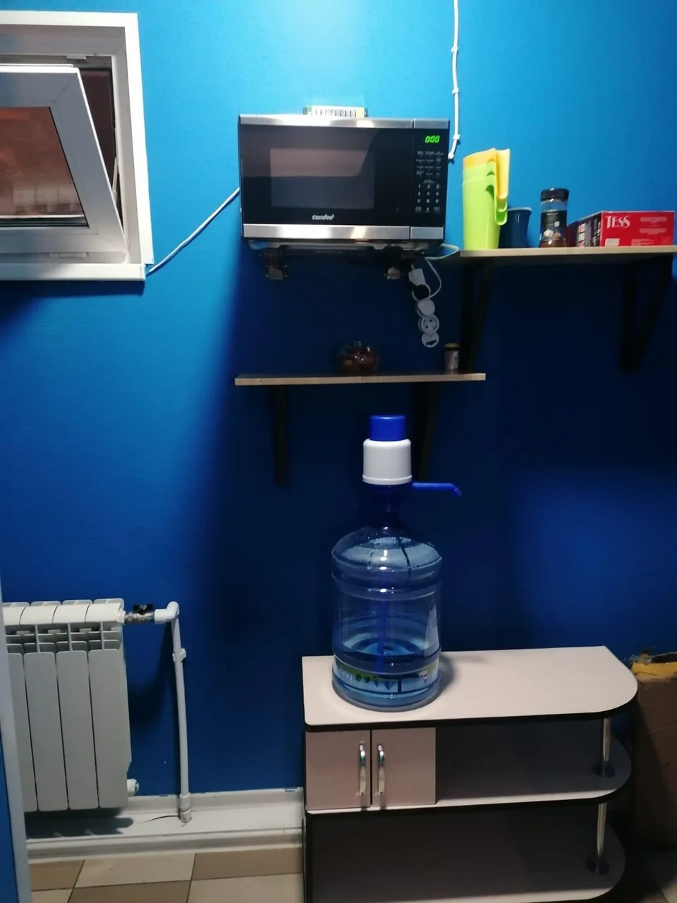 В общей зоне - микроволновка, чай, кофе, сахар, питьевая вода, книги для детей и взрослых.