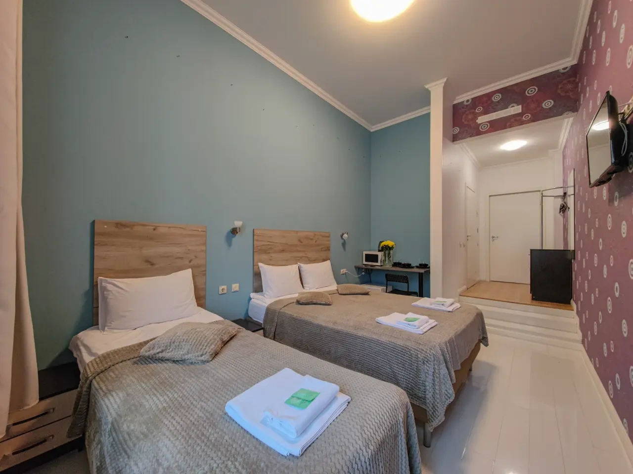 Семейная комната на двоих человек с собственными удобствами(односпальные кровати), также есть телевизор, холодильник, чайник ,посуда и микроволновая печь ,постельное белье, полотенца, фен ,кофемашина, чайная станция. Расположение в центре города рядом со станцией Гостиный Двор(пересечение невского/садовой) - в пешей доступности Русский музей, Михайловский сквер , Фонтанка, цирк и многое другое . Большое количество кафе и ресторанов ,хорошая транспортная развязка