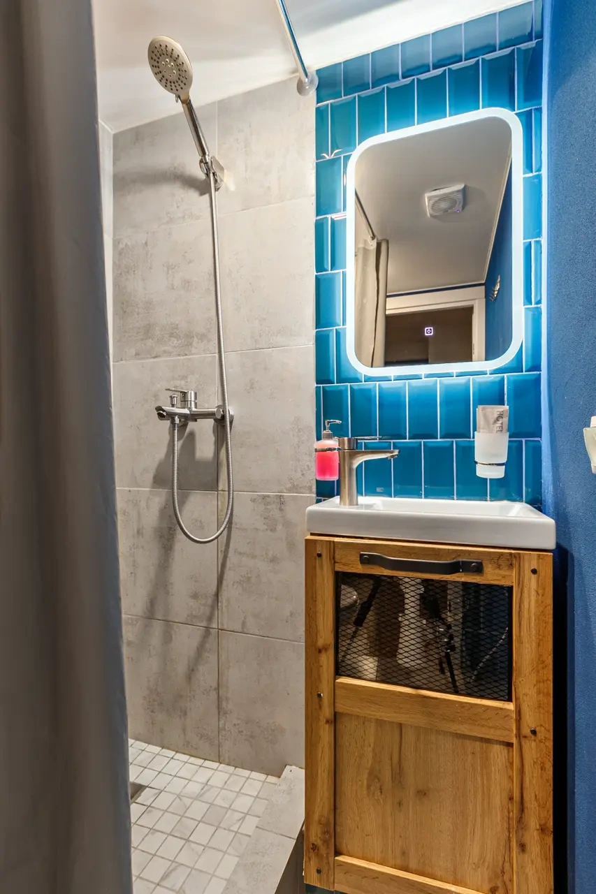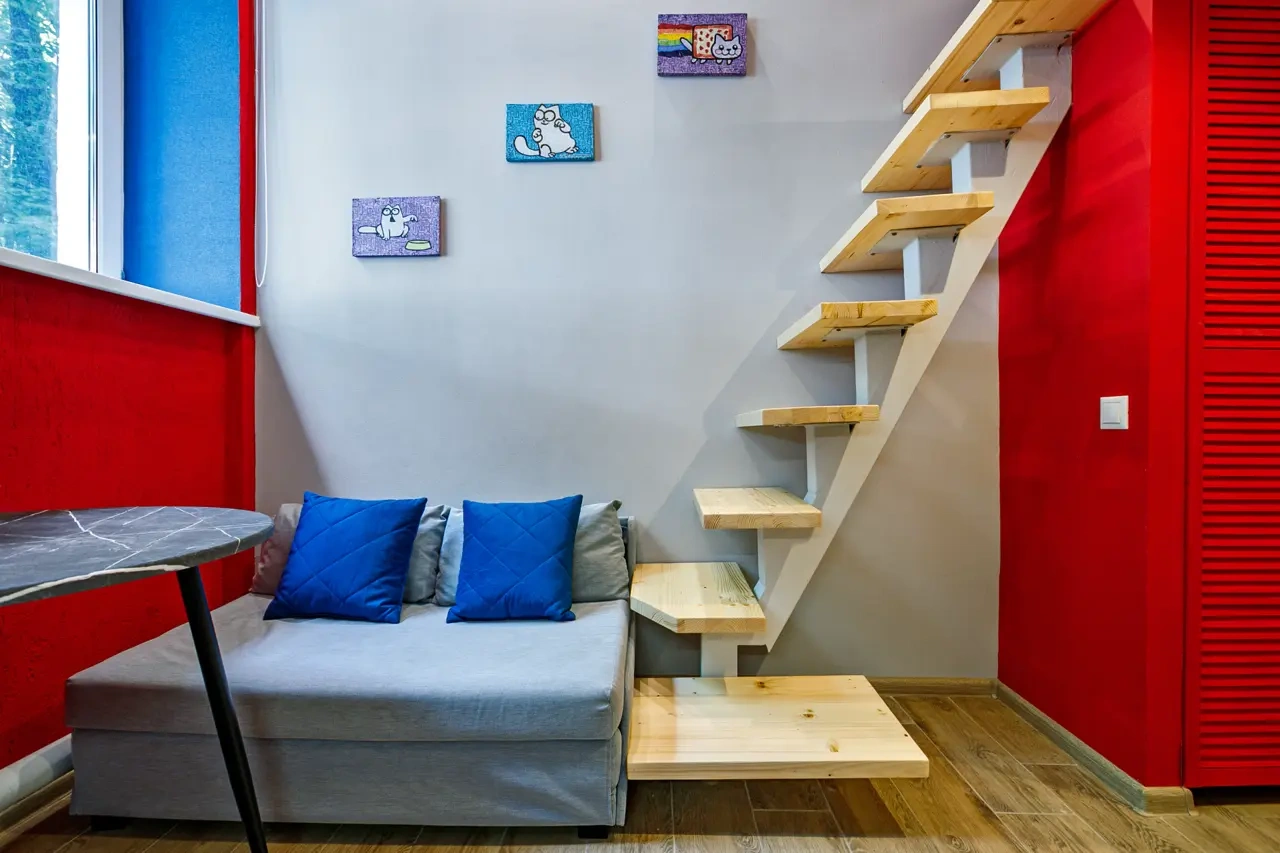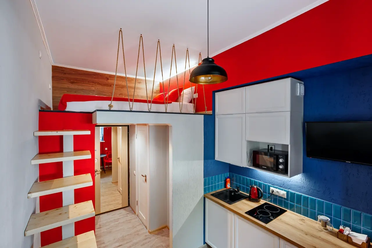 Задумка хорошая, но реализация пока страдает - в основной части отеля идет ремонт других студий, строительная пыль летит везде. Лестница без перил может быть опасной, в целом в студии много пыли, все отваливается - например держатель для полотенец. В один вечер на меня в ванной вывалился полотенцесушитель из стены - когда я об этом написала, мне ответили только лишь «спасибо за информацию». Въезд в студию бесконтактный, об этом заранее нигде не написано и это стало для меня сюрпризом при заезде