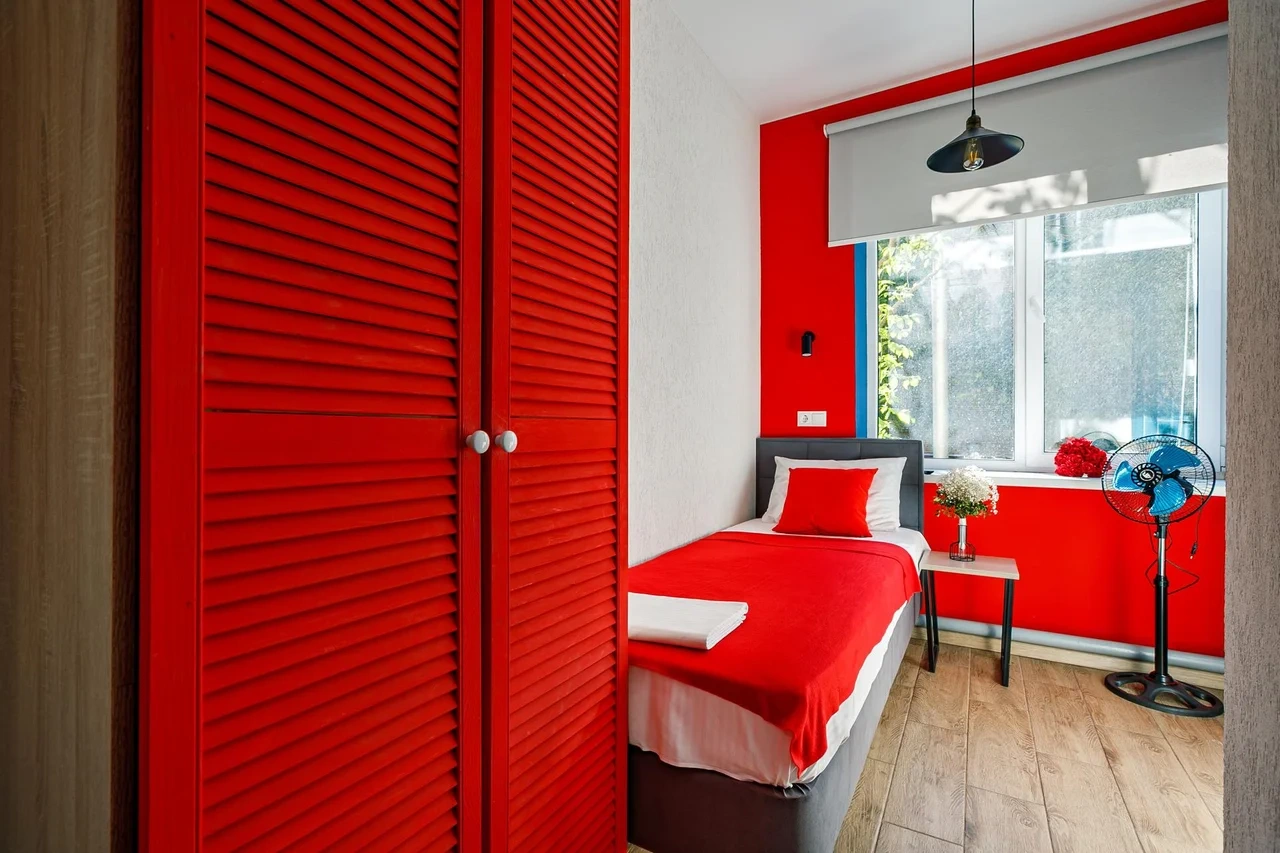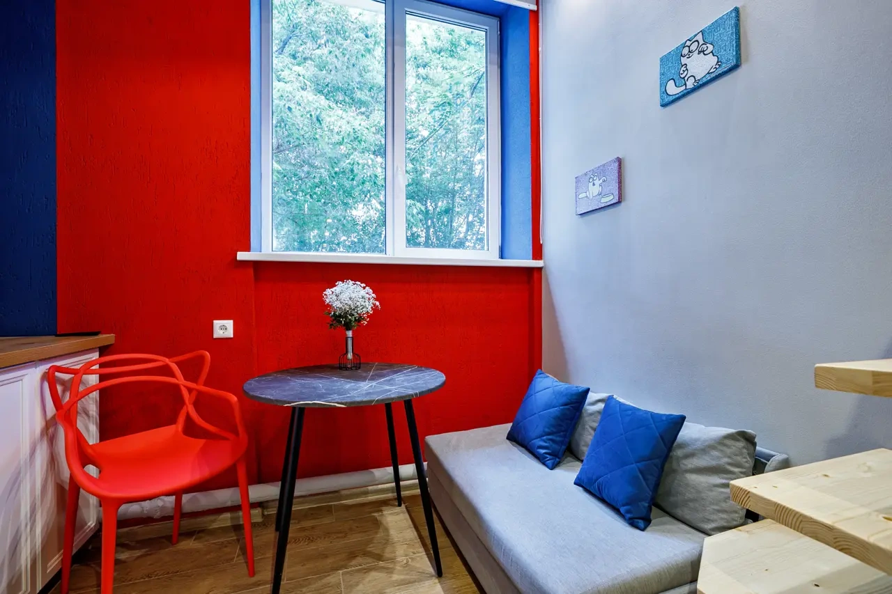 Впервые был в таком роде хостеле, где нет ресепшена. Красивый номер, интересное решение с кроватью на 2 этаже. Полноценная кухня. В целом остались довольны. Провели здесь 1 ночь.