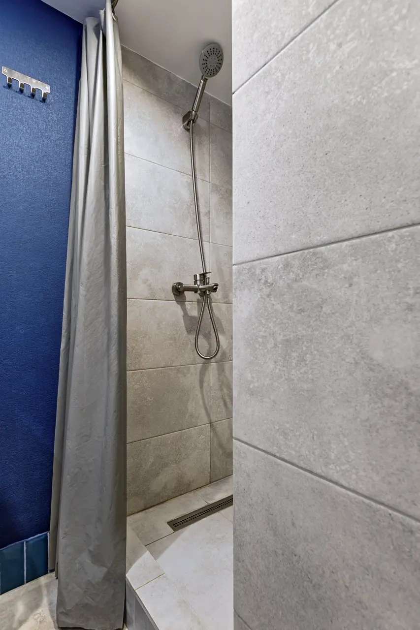 Пол крайне холодный. Очень не помешал бы подогрев. Объект прям новый, открыли буквально пару месяцев назад, и ремонт полностью соответствует новостройкам. С виду всё красиво, но когда вглядываешься, понимаешь, что всё сделано через одно место. Кровать на второй этаже, лестница не очень удобная. Ночью просыпаться и идти в туалет целое приключение)