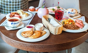 Странным показалось то,что мне отказали отоварить талон моего спутника,не пришедшего на завтрак в любом виде.Хоть с собой ,хоть на месте.На двери весит объявление,что выносить еду запрещенно из-за пандемии.Полный бред,учитывая,что с 12 .00 можно заказать доставку в номер.