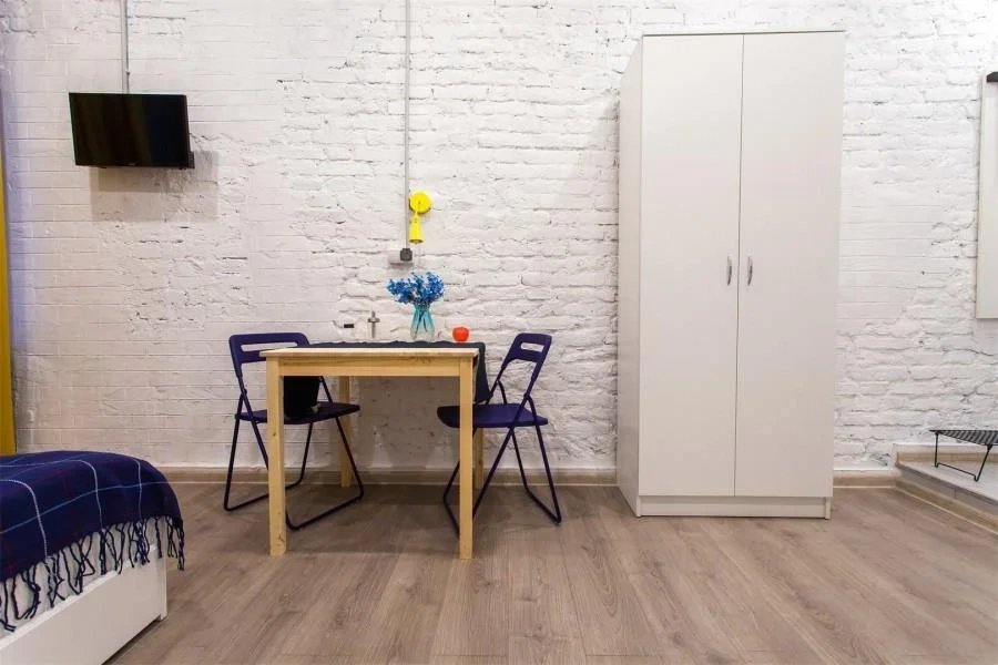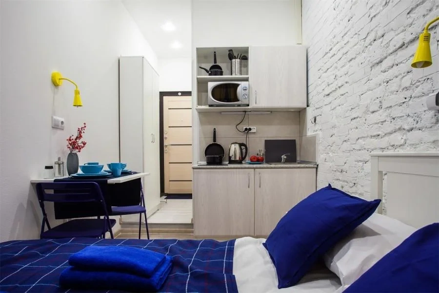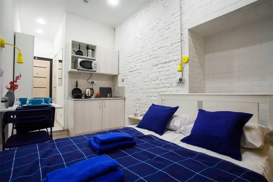 Остановились с сестрой по Улице Рубинштейна 22,1 студия.Когда зашли в холл воняло сыростью и так же сырость была в студии,в душевой.В душевой была сгнившая подставка под гели,был фен.Мыло в дозаторе было на 2 применения.В комнате стены были в пене ремонтной под окном .Через 5 дней просила убрать номер.Не положили туалетную бумагу,не поменяли постельное бельё,не долили мыло в дозатор.Пол был помыт очень плохо,про пыль вообще молчу,его не вытирают.После обращения к администратору чтобы переделали,они пришли за 2 дня до выселения,когда уже скоро уезжать,были мы 12 дней.Ну и самое главное окно выходит на караоке клуб,студии на 1 этаже,москитной сетки нет.Ночью орут,ссут и блюют под окнами.Так же курят.Когда выходят и заходят в клуб слышна очень Музыка.Не очень трезвые люди просто стучали нам в окна.Не могли спокойно проветрить и открыть шторки