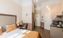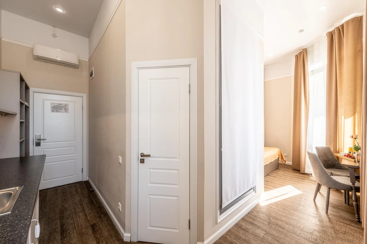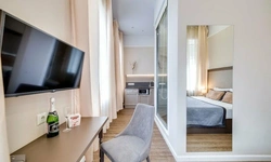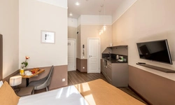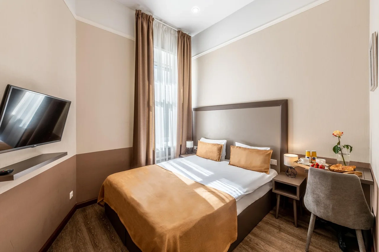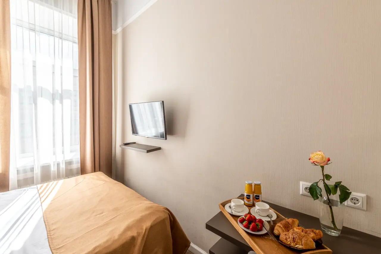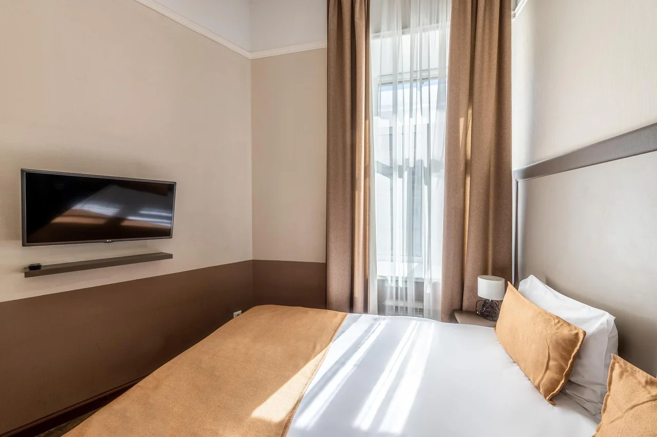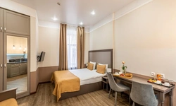 Для Вас каждый номер оснащен всем необходимым для комфортного проживания: зона отдыха и небольшая рабочая зона, мини-бар, смарт ТВ, собственная ванная комната со всеми необходимыми удобствами. В категориях "Комфорт" и "Люкс" присутствует мини-кухня и телефон.