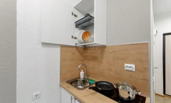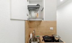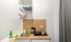 - Необходимая техника для кухни: электрический чайник, варочная панель, мини-холодильник;
