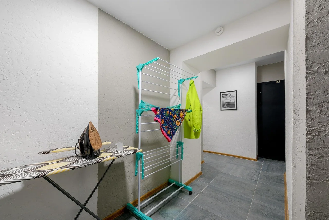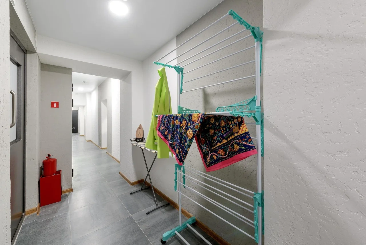 - Утюг и гладильная доска, а также сушилка для белья - в общем доступе на этаже;