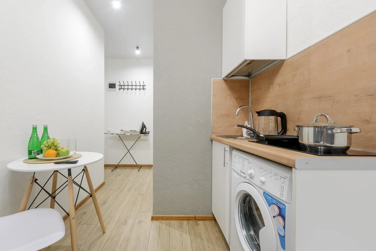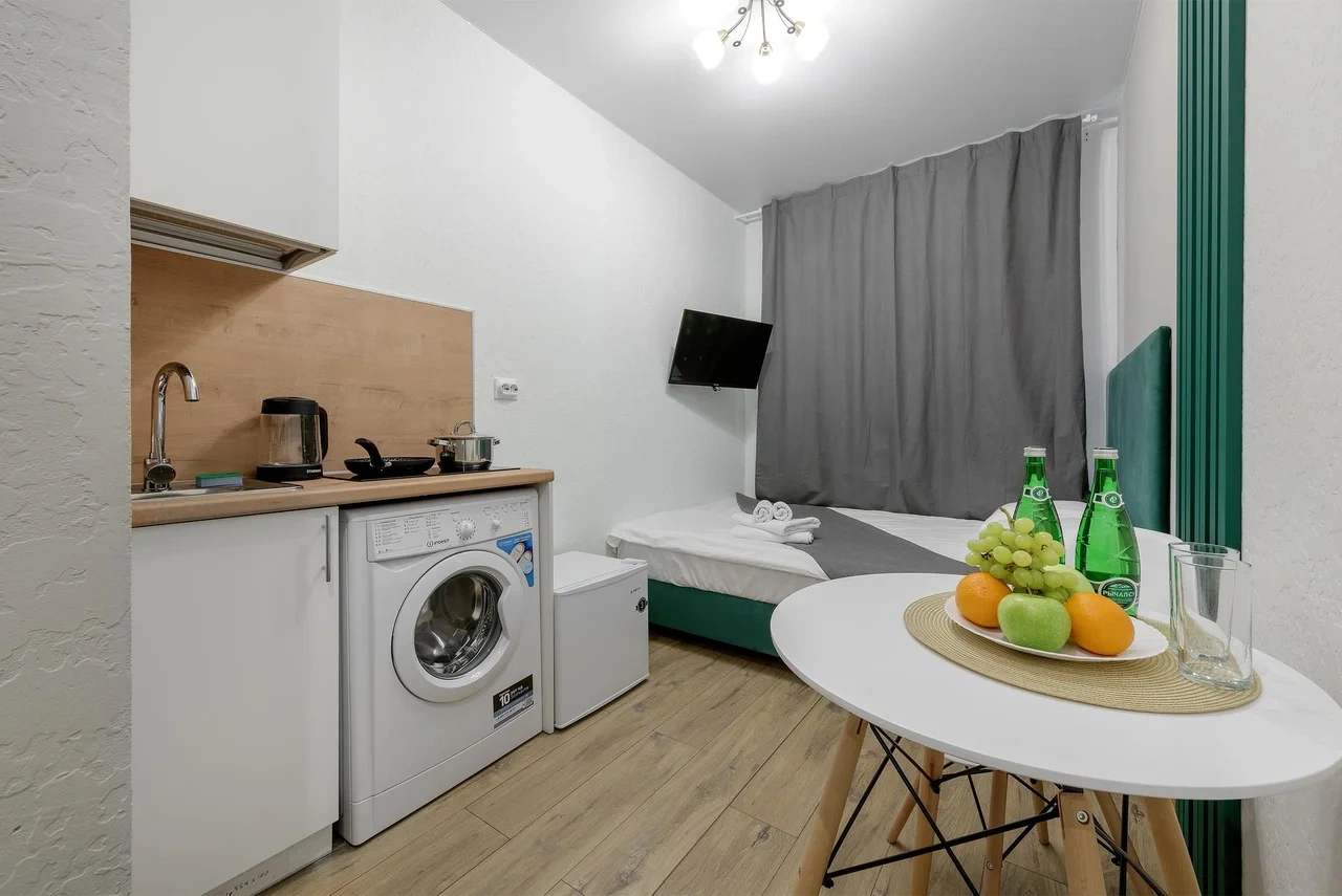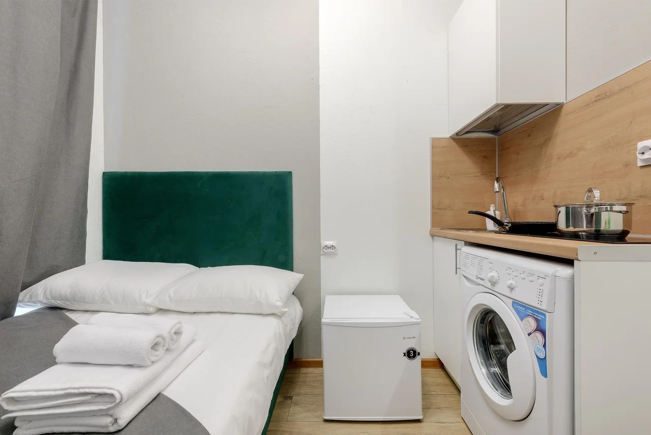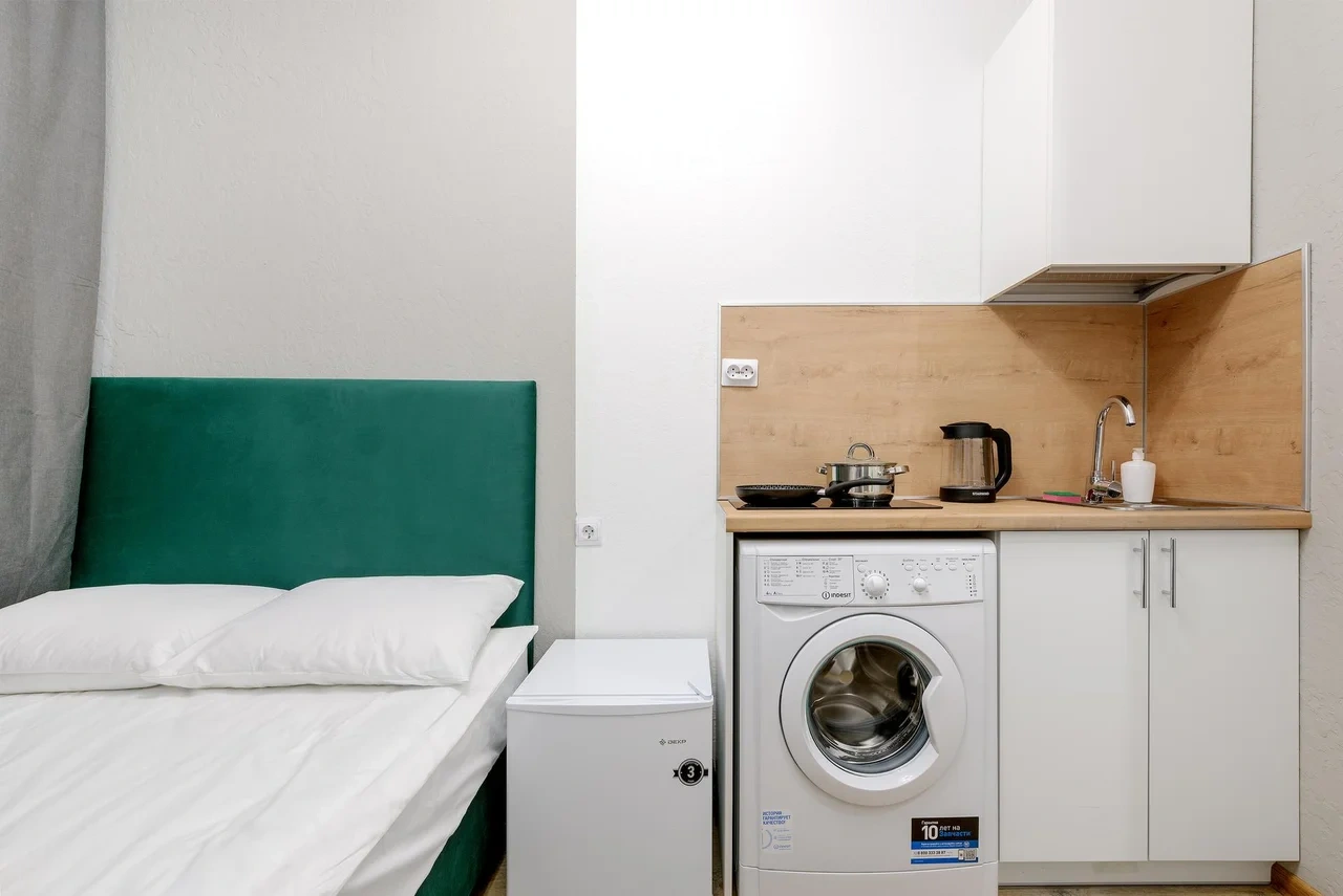 - В каждой студии индивидуальная стиральная машина;