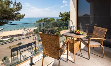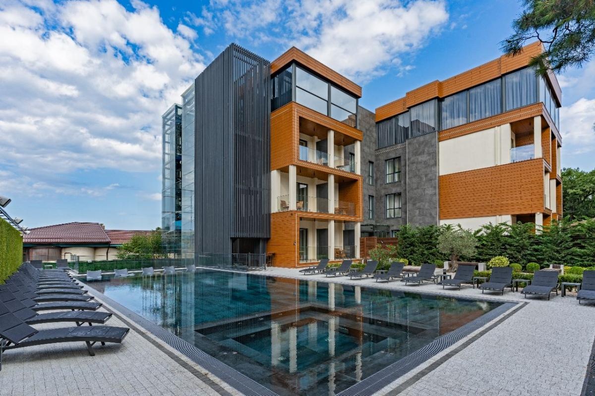 На территории отеля имеется открытый подогреваемый бассейн с гидромассажной зоной и террасой для загара с комфортабельными шезлонгами.