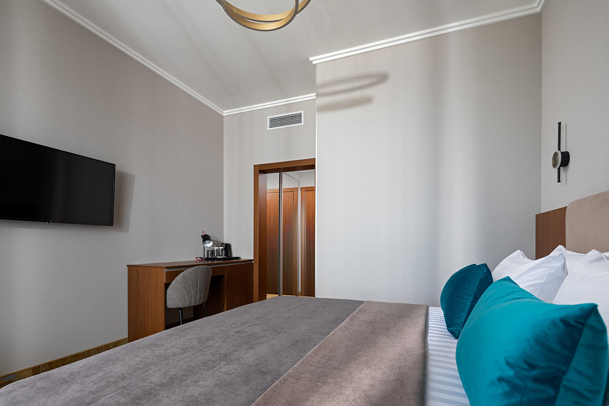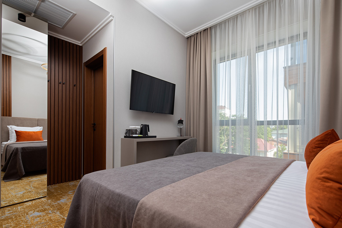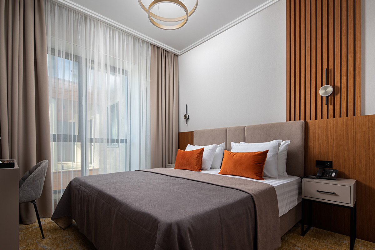На первом этаже отеля расположился ресторан фьюжн-кухни "Маринад", в котором сервируются завтраки для гостей. Номерной фонд отеля насчитывает около 40 номеров. В здании отеля имеется панорамный лифт.