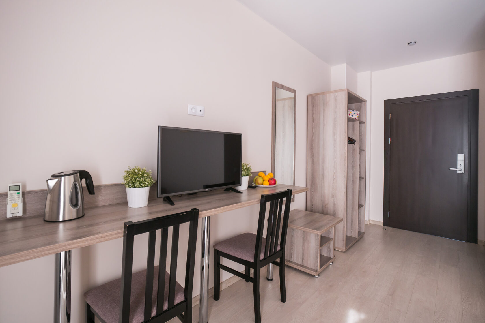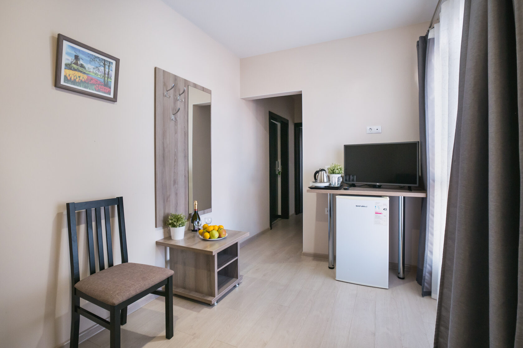 Отель расположен близко к набережной и пляжу, в номер чистый,просторный,светлый и приятный внешне. В номере есть чайный набор,чайник ,холодильник,телевизор, По утрам вкусный завтрак,,,,,,,,,, нам с женой очень понравилось персоналу большое спасибо,,,,,,,,,,,,,,,