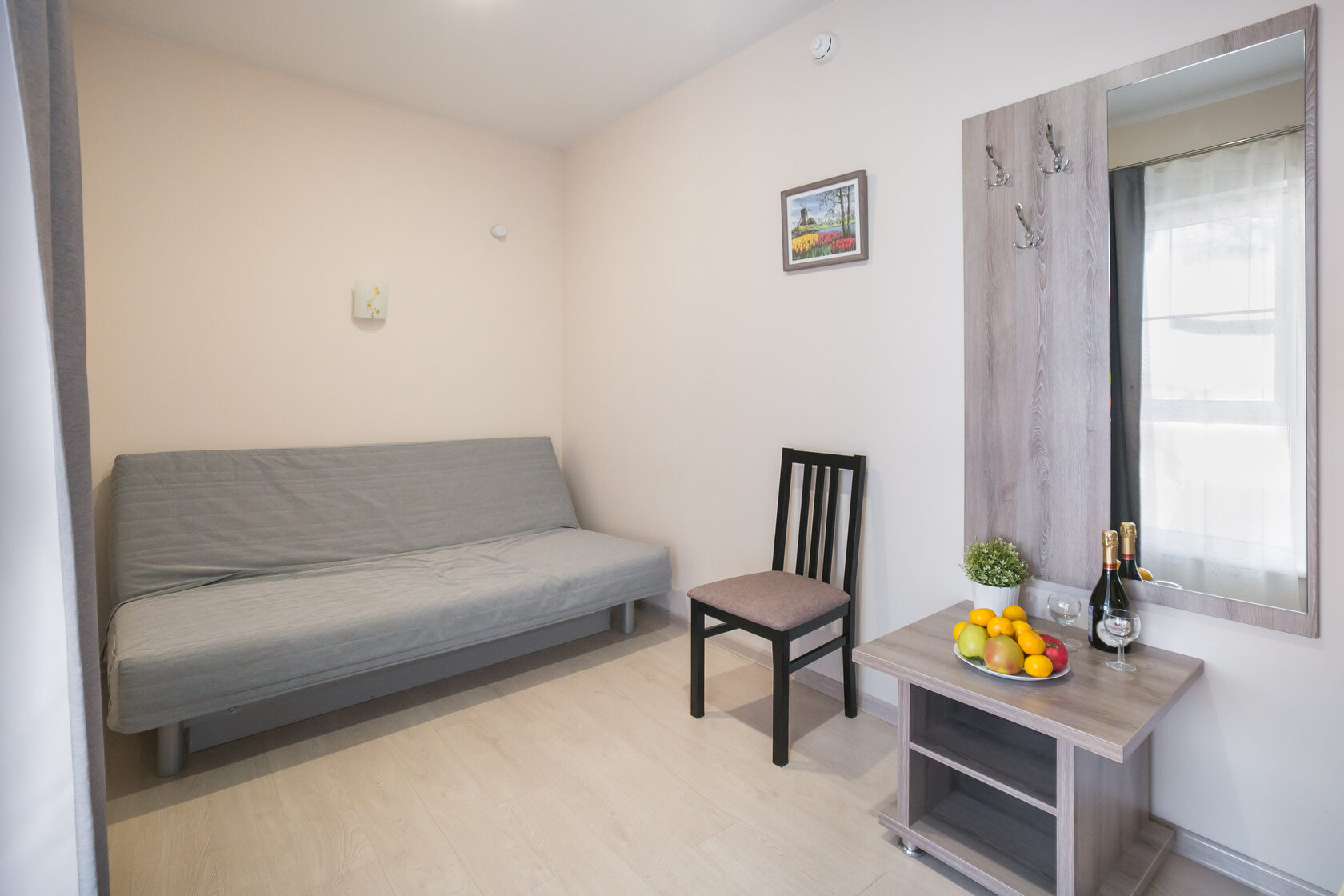Номер отличный, есть все возможные удобства, хорошая звукоизоляция(а это важно, так как под окнами оживленная улица, где постоянно с басами машины курсируют). До моря, кафе, магазинов аптек от 2х до 5 минут пешком. Безопасность с ключом картой от калитки и номера, камеры в холлах. Очень внимательная, улыбчивая и вежливая администратор.