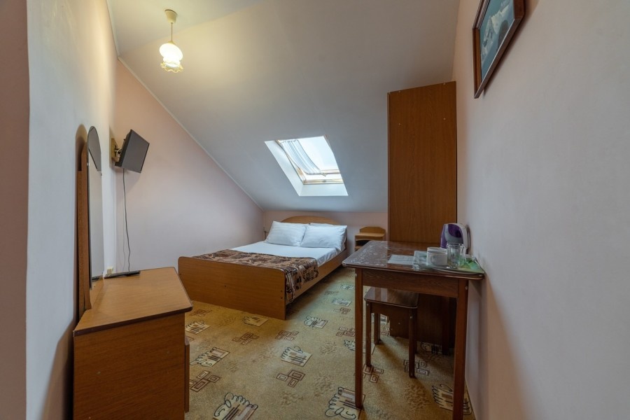 Понравилась аллея из туй во дворе, чистое белье. Нам нужно было переночевать одну ночь перед заселением в другой отель, поэтому выбирали недорогой вариант. Выбрали вариант с общей душевой на мансардном этаже. Много не ожидали.