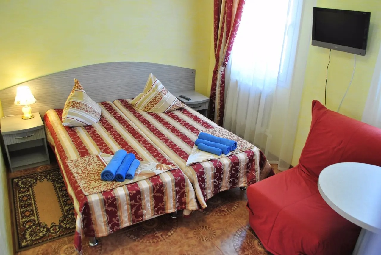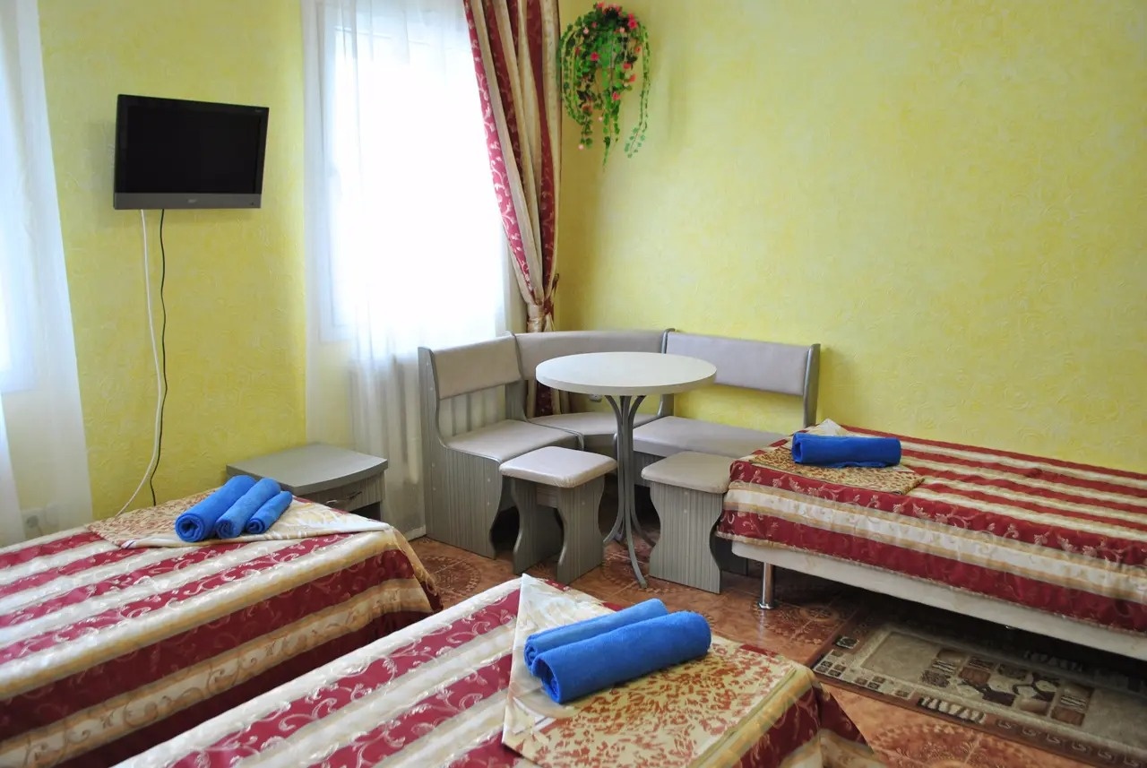 Гостевой Дом - это незабываемый отдых, который вы будете вспоминать , надеемся , только хорошими и добрыми словами. Мы постараемся сделать всё от нас зависящее и делать это мы уже начали построив для вас уютные номера со всеми удобствами, продумав всё до мелочей, оснастив всем небходимым. Гостеприимство хозяев (Игоря Владимировича, Ольги Вячеславовны) и их помощников всегда с Вами и вашими семьями начиная от встречи на вокзале, расселения в номера, получения любого рода информации о местной инфраструктуре, проведения для детишек, да и взрослых костюмированных представлений, анимации, концертов, иллюзион шоу и т. п. до проводов домой. Большой плюс Гостевого Дома - это расположение. Всё рядом магазины , кафе, рынок, аквапарк, дельфинарий ну и , конечно же, лучший пляж с песчаными барханами , не сразу глубоким и тёплым морем , что позволит детям самостоятельно плескаться в нём. Также от самого Гостевого Дома на маршрутном такси минут за десять можно попасть в центр Анапы, прогуляться по главной набережной курорта, зайти в парк развлечений запечатлеть это на фото или видео, отведать местного вина, закусив свежими фруктами или шашлыком, а на десерт сьесть вкусного мороженого. Вообщем приезжайте в Гостевой Дом с хорошим настроением, а уедите с хорошими впечатлениями. С уважением коллектив Гостевого Дома.