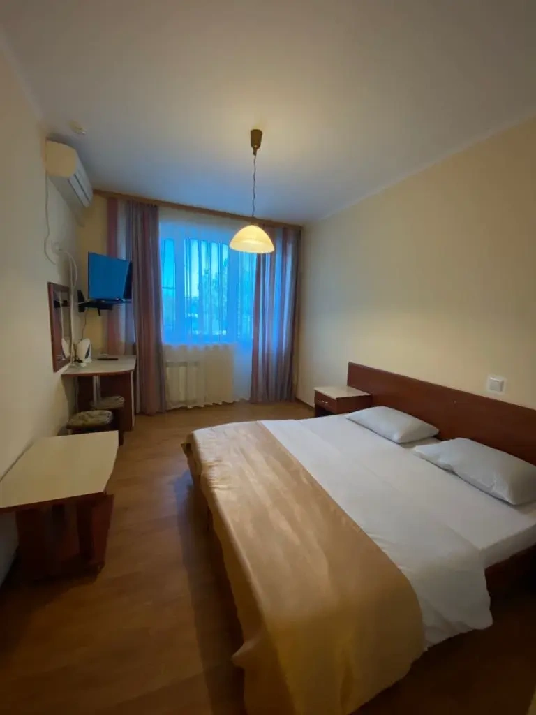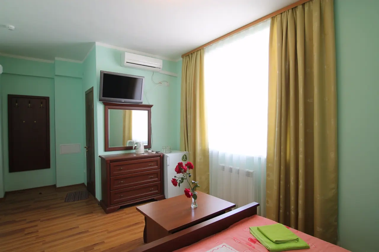 Одноместный номер, размещение до 2-х человек: 1,5 спальная кровать; Холодильник; ЖК телевизор; Душ, туалет; Wi-Fi; сплит-система; Чайник, минимальный набор посуды; Сушилка для белья; Наши номера очень уютные, чистые и полностью укомплектованы для хорошего отдыха! Ждём вас в гости
