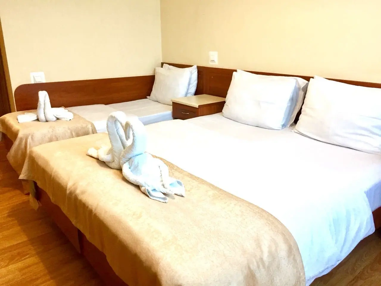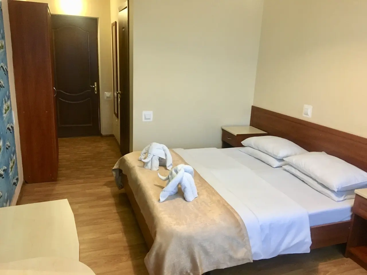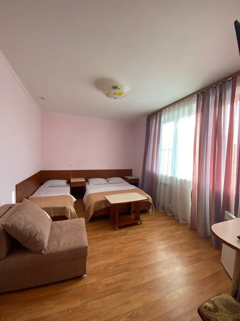 Семейный номер с балконом, размещение до 5-ти человек: Двуспальная кровать + одна односпальная кровать+кресло-кровать; Холодильник; ЖК телевизор; Душ, туалет; Wi-Fi; сплит-система; Чайник, минимальный набор посуды; Сушилка для белья; Балкон с зоной отдыха; Наши номера очень уютные, чистые и полностью укомплектованы для хорошего отдыха! Ждём вас в гости