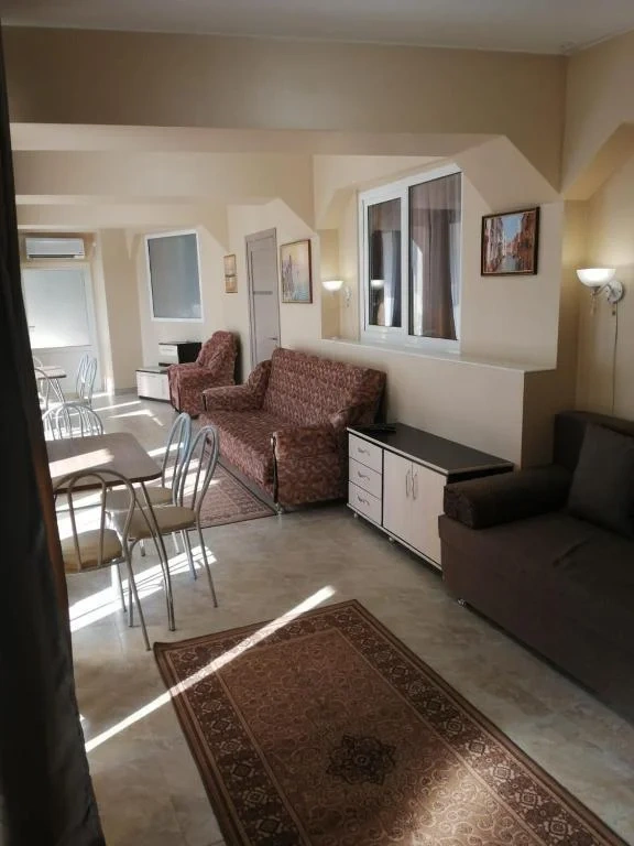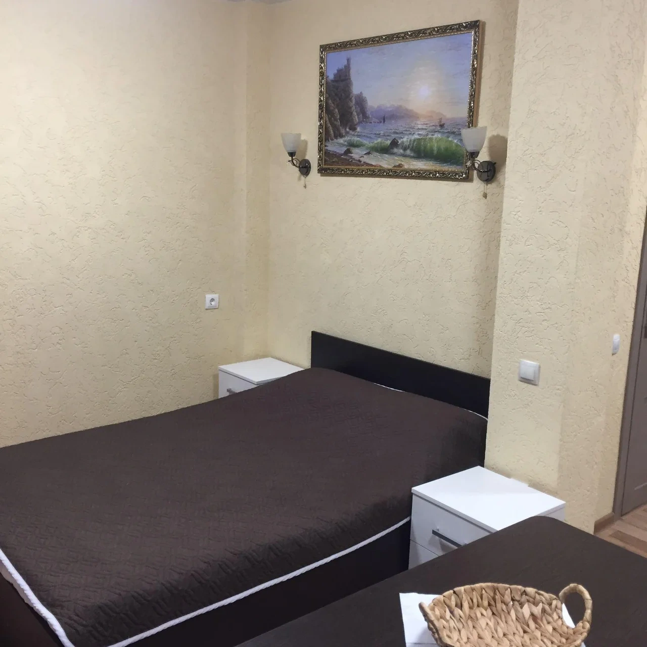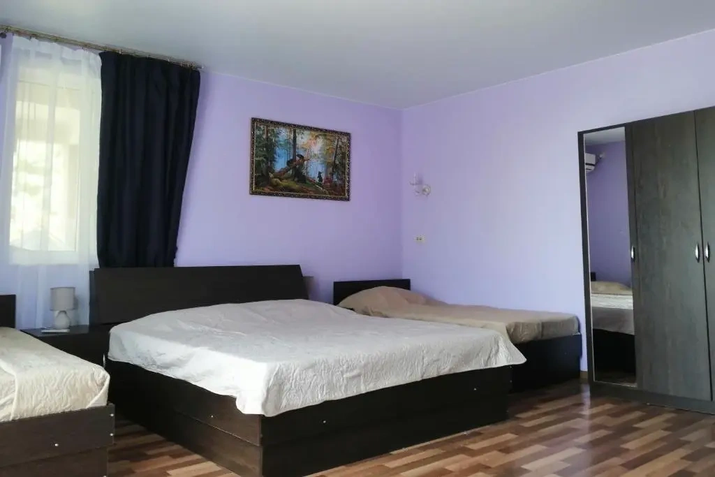 Просторный номер со сплит-системой, большим телевизором с пакетом триколор, балконом и видом на море. В номере большая двуспальная кровать и диван-кровать.