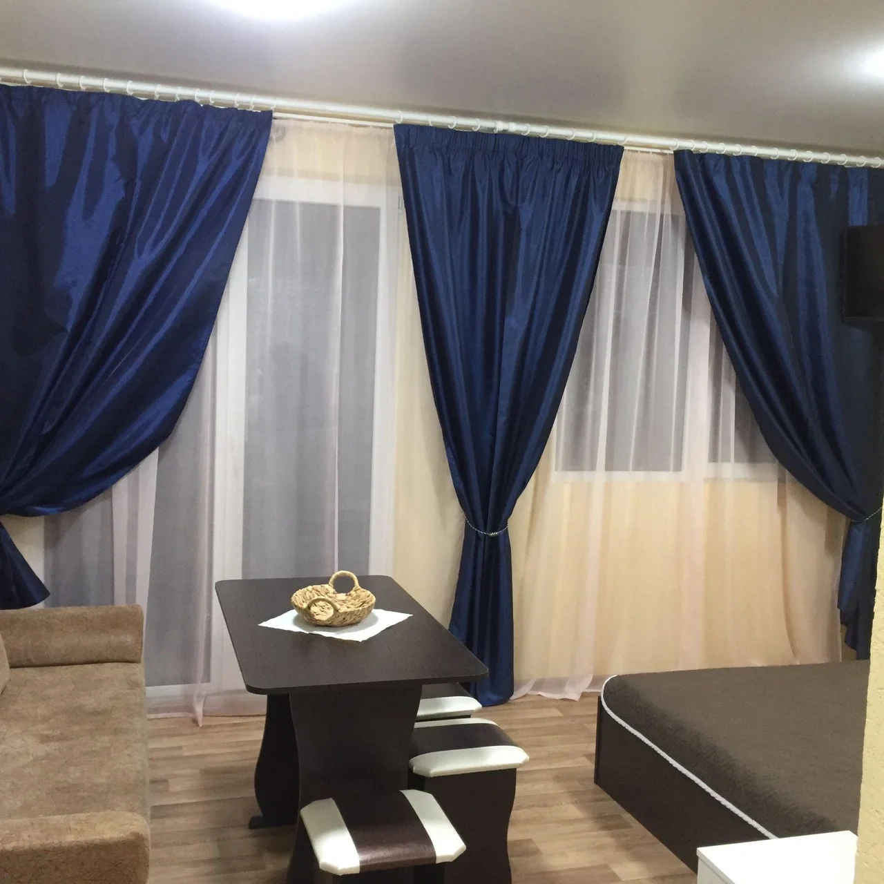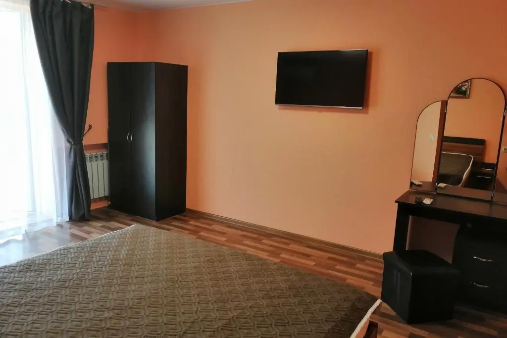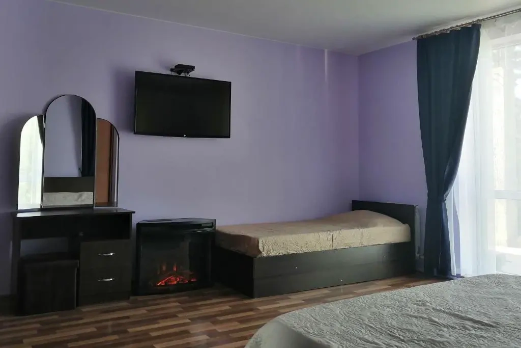 Трехместный номер с большой двуспальной кроватью и креслом-кроватью, большой телевизор с пакетом триколор, сплит-система.