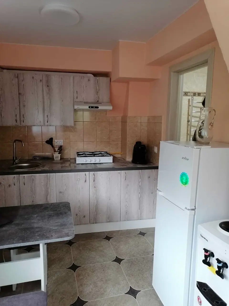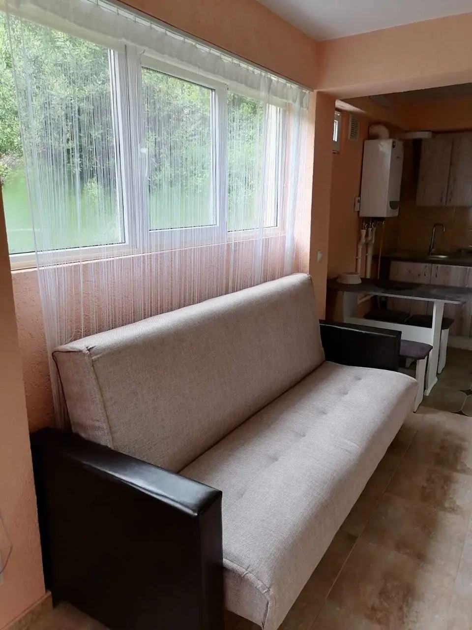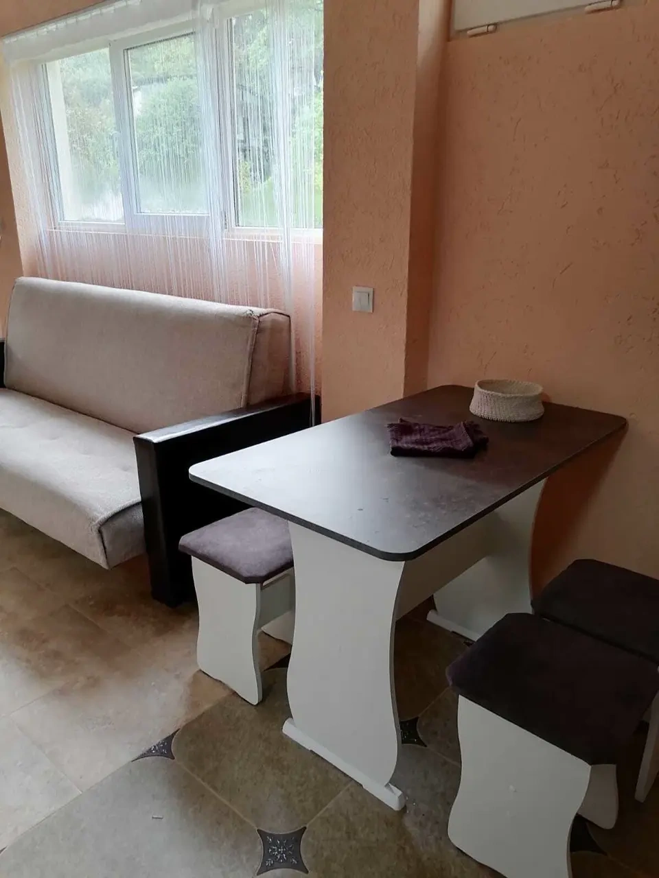 Небольшой уютный номер в светлых тонах, в номере диван-кровать и кресло-кровать, телевизор с пакетом Триколор, сплит-система, собственная кухня, оснащенная всем необходимым, своя зона отдыха на терассе, зона барбекю.