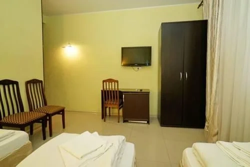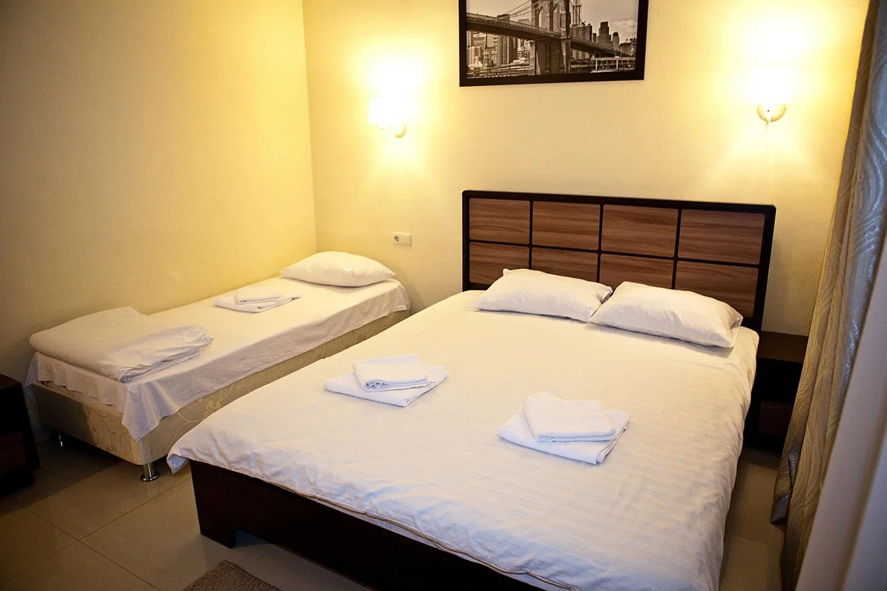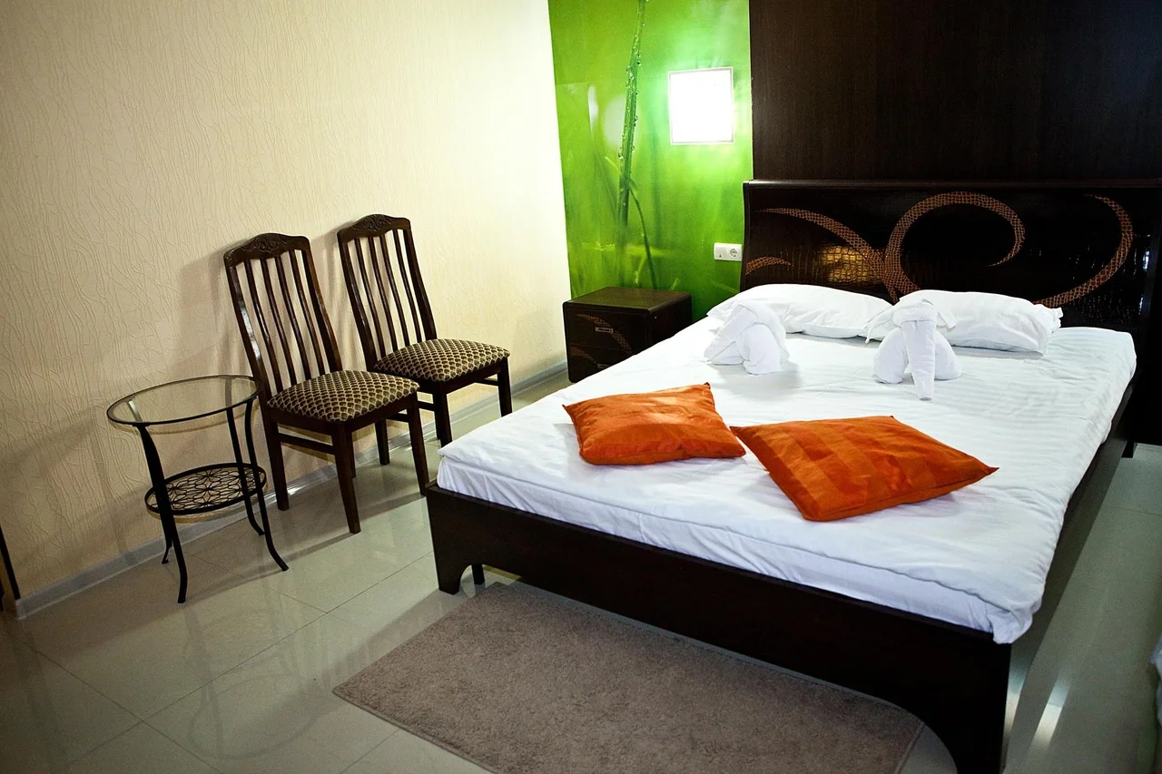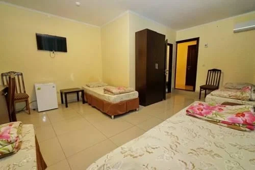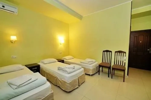 Светлые современные комфортабельные номера оснащены всем необходимым для отдыха.Раздельные кровати ортопедические матрасы, смена белья каждые 3 дня,ежедневная уборка номеров.Полотенце 2(баня,руки). Скидка 10% на ресторан.Бесплатно:wifi,услуга будильник,парковка,на территории пляжа волейбольное поле.