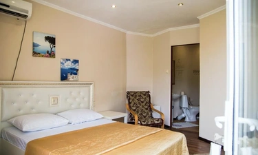 Особенностью нашего отеля является термальная ванна и бассейн с подогревом.Особенно это важно в весенне-осенний период, когда море холодное, а бассейн имеет оптимальную для купания температуру. Термальная ванна до +40 градусов (с эффектом термальных источников), в свою очередь, добавит приятных ощущений, если после неё искупаться в холодном бассейне.