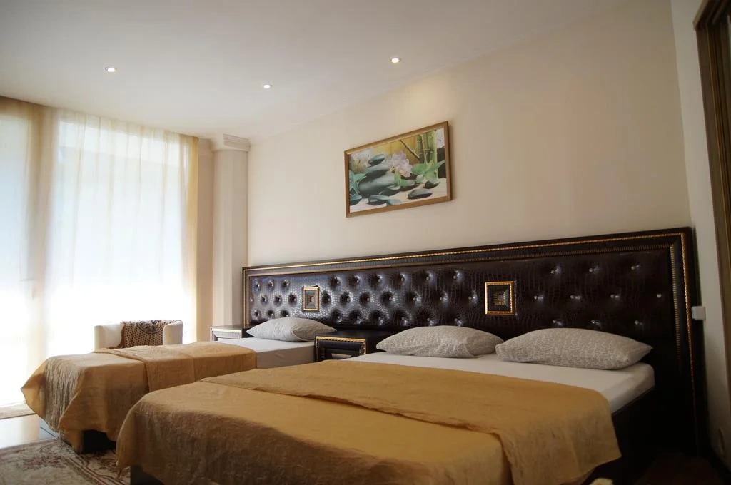 Кровать ужасная! Спали как будто ногами вверх, хотя у нас номер был люкс. Постельное белье свежее, но простынь не в размер кровати и постоянно сползала. В номере грязная посуда и вообще очень грязно!