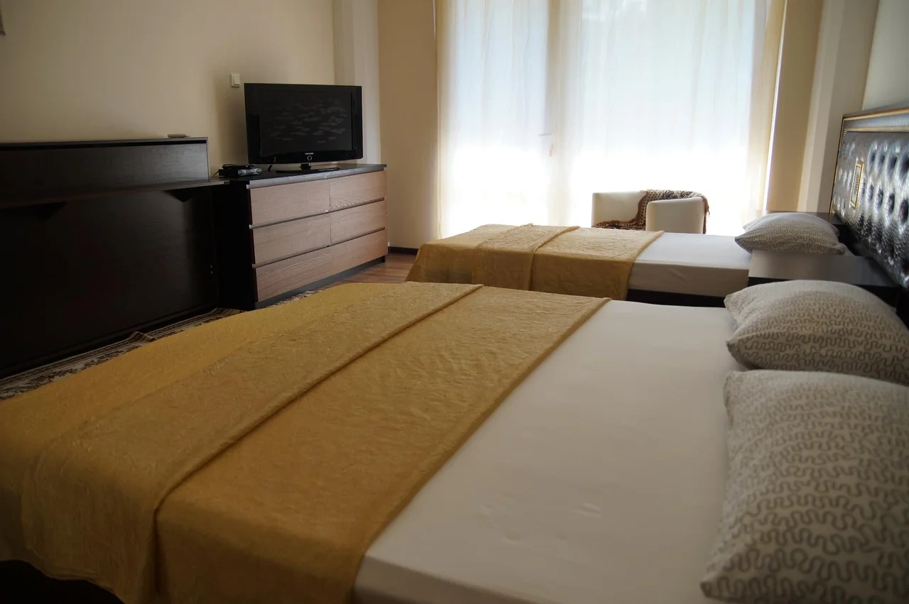 Уютный был номер, на территории есть бассейны очень удобно если не хочешь идти на море, территории очень зелёная и приятно на ней находиться, понравилось все