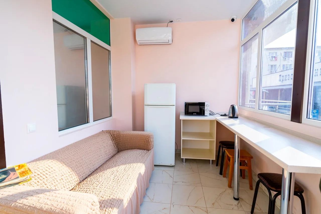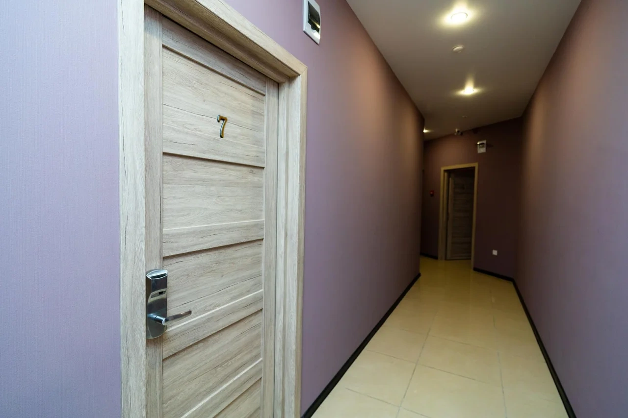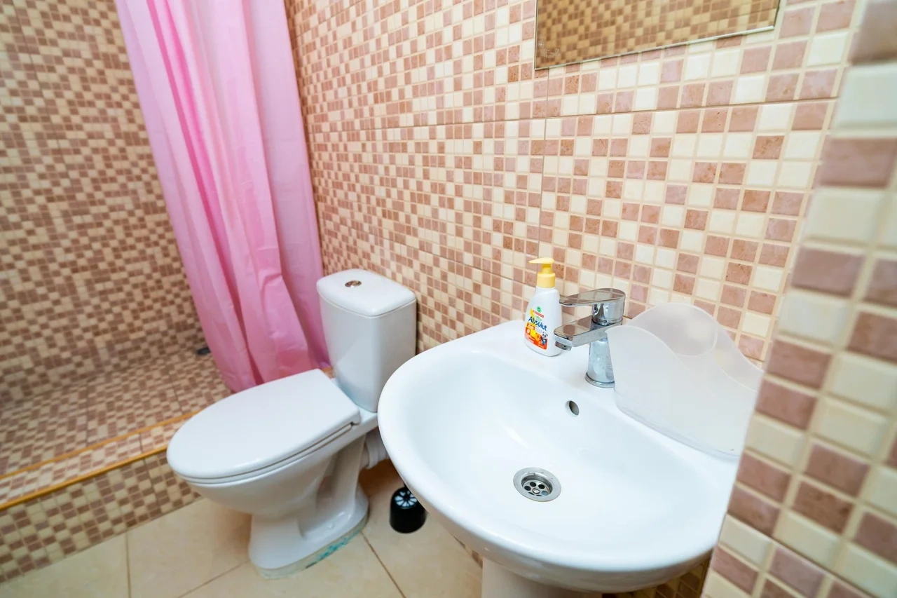 В семейном номере есть: 1 двуспальная кровать и 1 двухъярусная кровать. Шкаф, кондиционер, журнальный столик. У каждого койко-места есть своя лампа и розетка. В номере есть душ и туалет. Есть комната приема пищи и отдыха: кулер, холодильник, микроволновая печь, телевизор и диванчик
