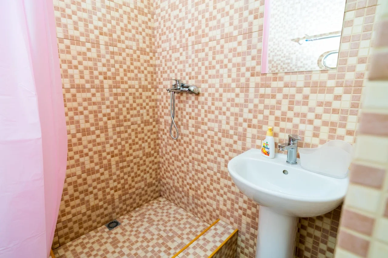 4 двухъярусные кровати. В смешанном номере есть: шкаф, кондиционер, журнальный столик. У каждого койко-места есть своя лампа и розетка. В номере есть собственный душ и туалет.Есть комната приема пищи и отдыха: кулер, холодильник, микроволновая печь, телевизор и диванчик