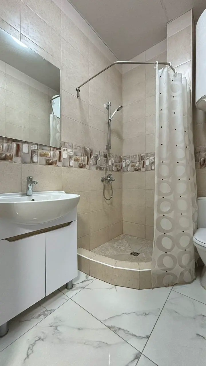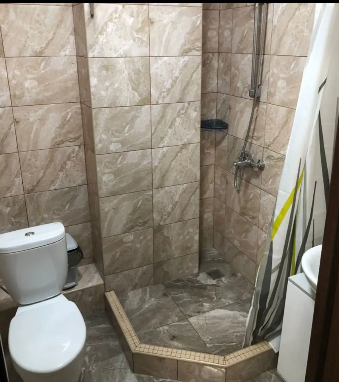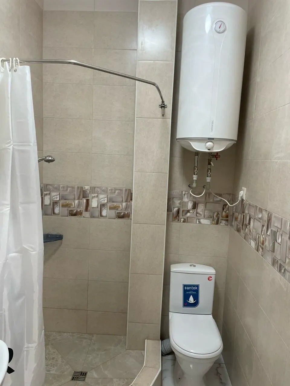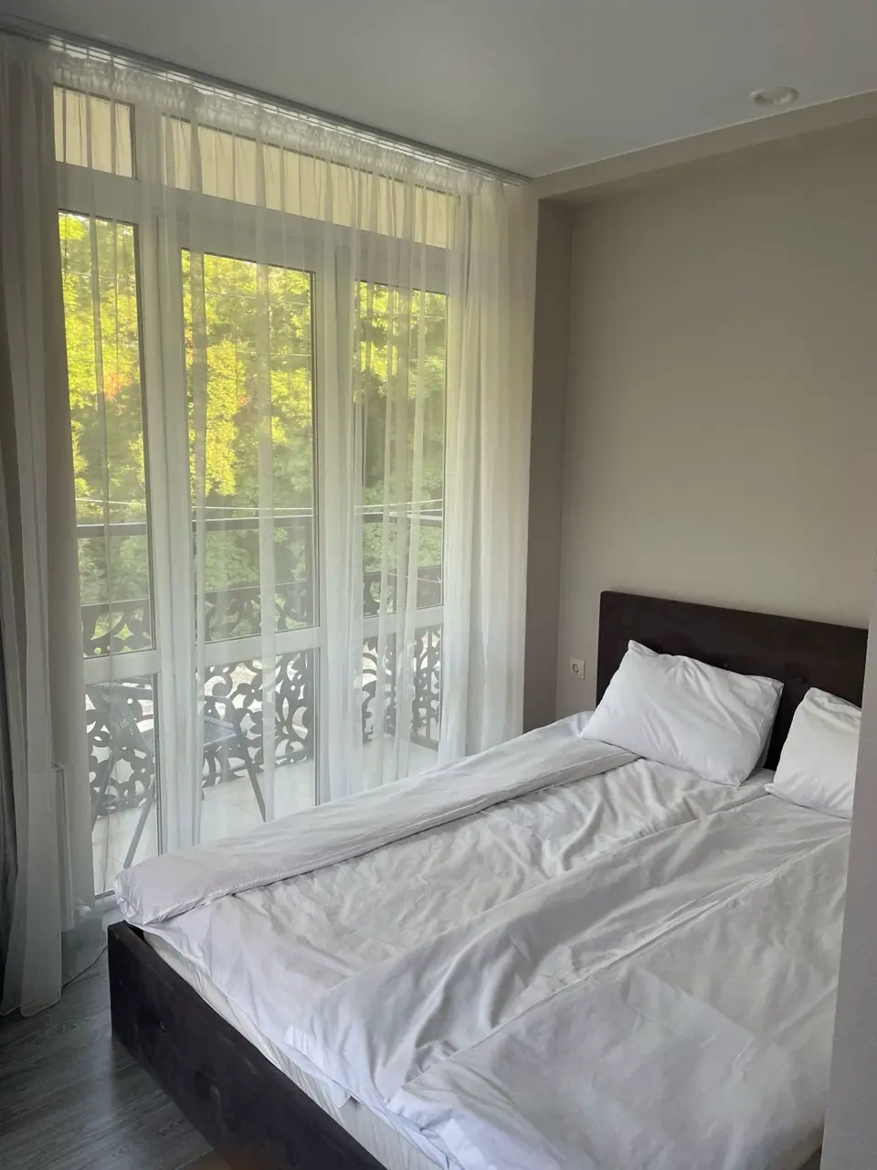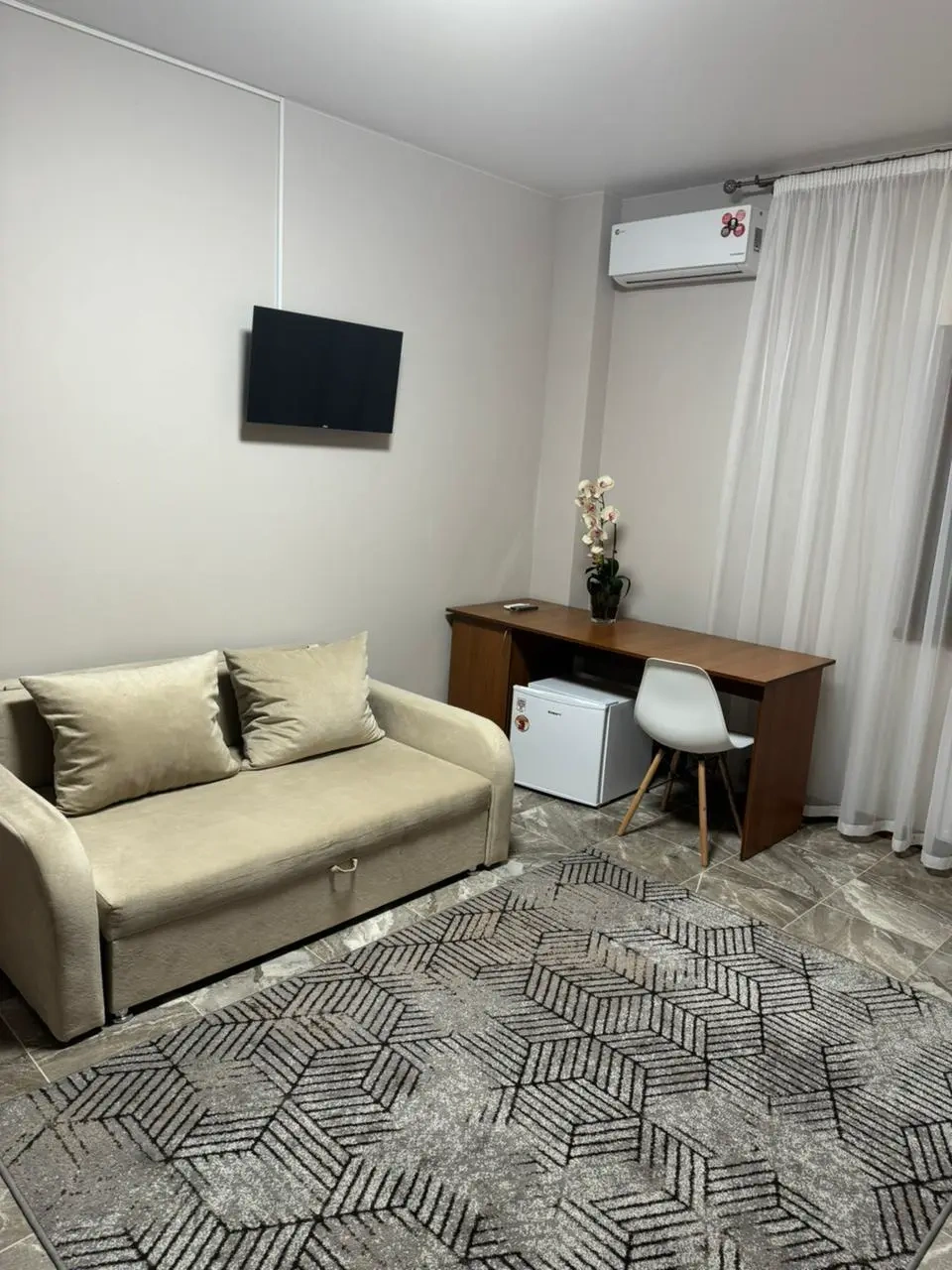 В номере расположены две широкие кровати (совмещены), двухспальный диван-кровать, холодильник, ТВ, сплит-система, санузел (душ, умывальник, унитаз),теневая сторона. S 28 кв.м. № 2 1 эт.