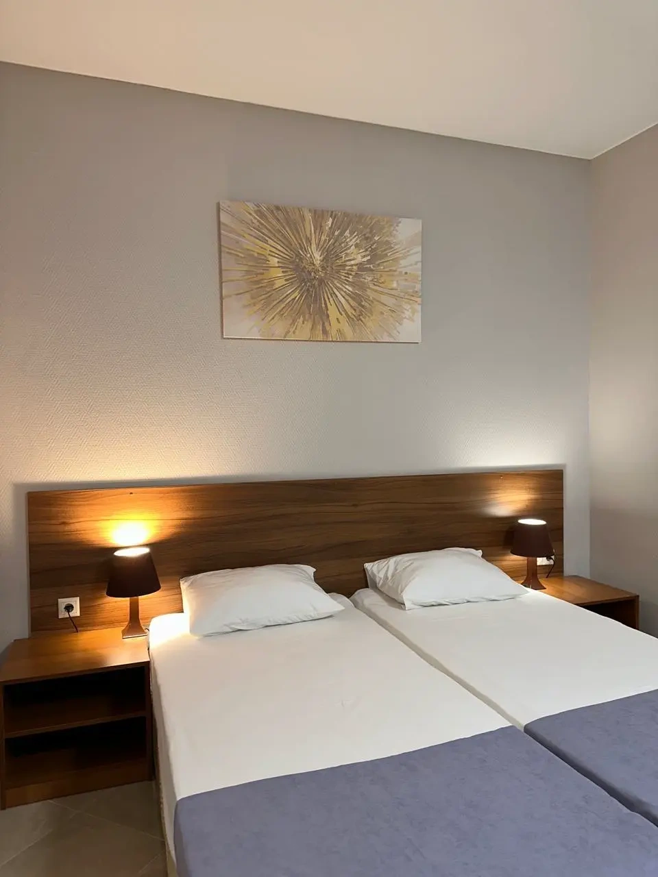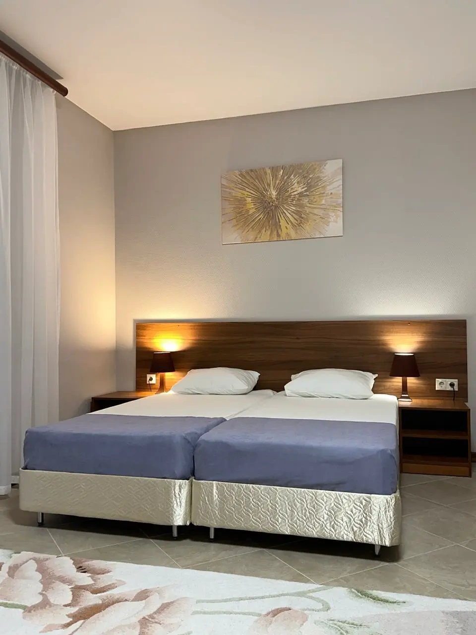 2*1,5 спальные кровати, + детская кровать (при необходимости), кондиционер, с/у, сплит-система, ТВ, холодильник. № 3 1й этаж